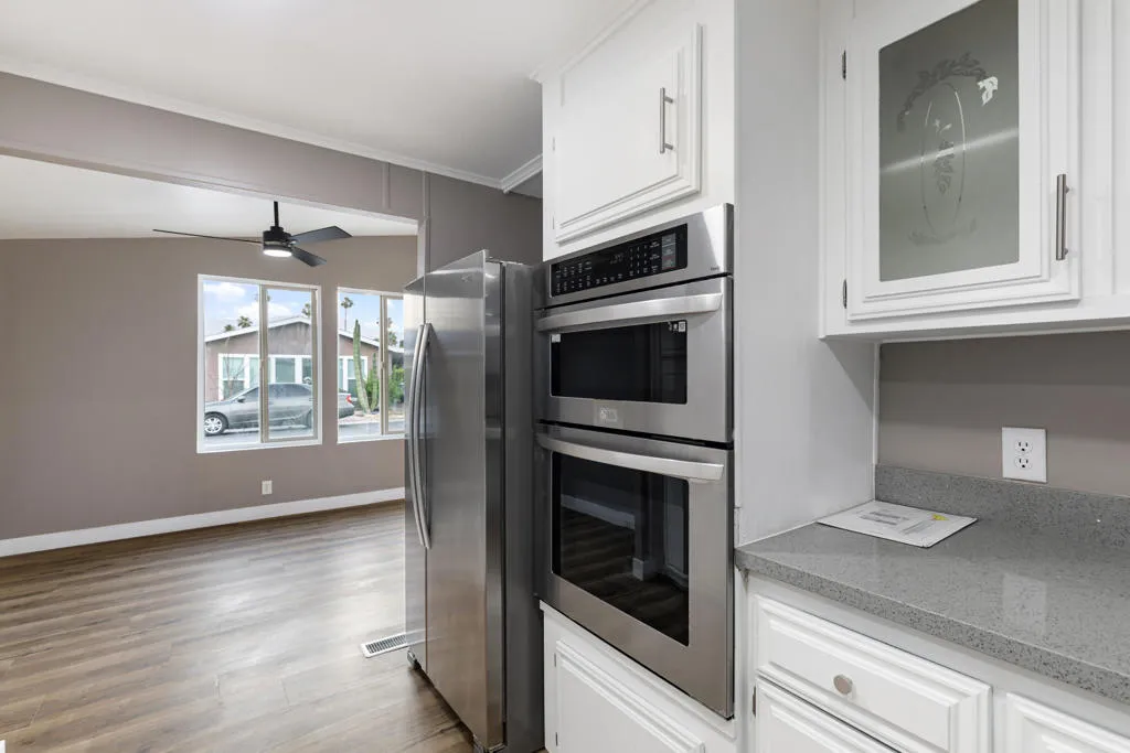 Beautifully Remodeled Home in Premier 55+ Community!!Welcome to this stunning, move-in ready manufactured home nestled in a desirable 55+ resort-style community in the vibrant city of Palm Desert. This spacious 2-bedroom, 2-full bathroom residence has been beautifully remodeled with fresh interior and exterior paint, brand-new appliances, elegant recessed lighting, and gorgeous new countertops. The generous dining and living areas flow with the charming kitchen, all adorn with stylish flooring throughout. Enjoy west-facing windows offering scenic views and glowing sunsets, while the large lot provides added privacy with no homes behind. A sizable storage shed is included for your convenience, and there’s a large indoor laundry area to make life easier. This sparkling community offers everything you need for an active lifestyle: multiple pools and spas, tennis court, pickleball, a nine-hole golf course, a welcoming clubhouse with billiards, and even an on-site cafe. Don’t miss the beautifully lit palm trees that create the resort ambiance, especially in the evenings. This is more than a home-it’s a lifestyle! Schedule your tour today!!