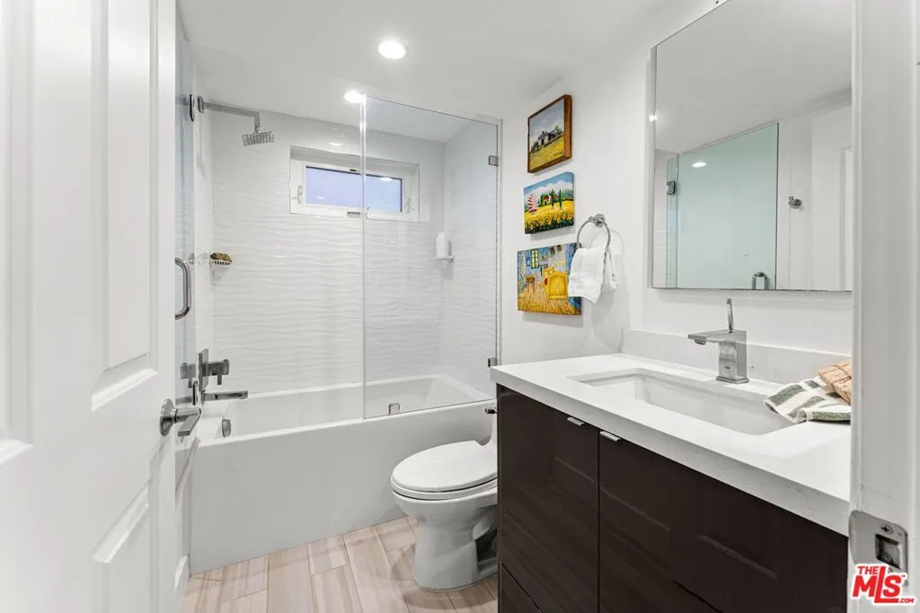 Experience the best of Brentwood living in this beautifully updated tri-level corner townhome. With approx. 1,600 sq.ft. plus a bonus room ideal for a home office or gym.Enjoy direct entry to a private 1-car garage plus 2 additional secured parking spaces, an open-concept floorplan with great natural light, and stylish finishes throughout, including tile and engineered hardwood flooring, recessed lighting, and built-in speakers. Brand new water heater. The remodeled kitchen features Bosch stainless steel appliances, Caesarstone countertops, a breakfast bar, and ample pantry/storage space. Both bedrooms are generously sized with en-suite bathrooms, and the living room and primary suite each offer a granite fireplace for added warmth and charm.All just moments from UCLA, top Brentwood shops, markets, restaurants, cafes, and convenient freeway access.