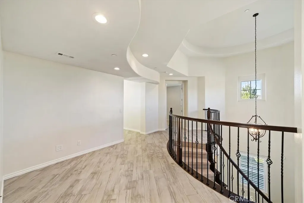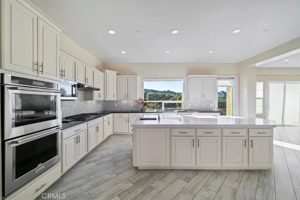 A stately entrance introduces the home with a dramatic circular foyer, custom inlaid medallion, and an elegant sweeping staircase adorned with intricate wrought-iron balustrades. Beyond, the formal living and dining rooms open to a private interior courtyard—an enchanting extension of the home ideal for entertaining. The chef-inspired kitchen features white cabinetry, slab granite countertops, designer tile backsplashes, a center island with prep sink,stainless steel appliances, a generous walk-in pantry. A charming breakfast nook flows seamlessly to the courtyard, creating a tranquil space for morning coffee. Adjacent, the expansive family room offers a cozy fireplace, recessed media niche, and access to the resort-caliber backyard. Each of the five ensuite bedrooms offers its own full bath and walk-in closet, providing boutique-hotel comfort for family and guests. The primary suite is a true sanctuary—lavish in size and ambiance—with its own fireplace, sitting area, balconette overlooking the mountains, spa-inspired soaking tub, separate shower, dual sinks with vanity, and a professionally designed walk-in closet.wcases elegant tile backsplashes or tub-surround accents, adding continuity to the home’s upscale finishes. Step outside to your private oasis. The backyard—calm, secluded, and framed by canyon views—features a PebbleTec heated pool and abundant space for relaxation. Enjoy the peaceful beauty of natural surroundings, occasional glimpses of wildlife, and striking city lights. With fully paid solar, dual-level air, a four-car-plus garage. Nestled within the prestigious Crystal Ridge encl