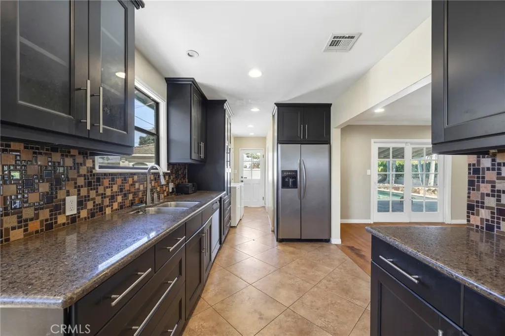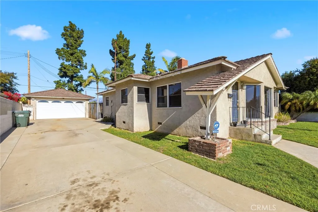 Located in a highly desirable West Covina neighborhood, this charming single-story 2-bedroom home with an option for a 3rd bedroom offers outstanding curb appeal, functional living, and resort-style outdoor amenities. A well-manicured front lawn and classic front porch set the tone as you enter into bright living spaces highlighted by hardwood floors, crown molding, recessed lighting, ceiling fans, and a beautiful brick fireplace as the focal point of the living room. The upgraded kitchen features rich dark cabinetry, granite countertops, stainless steel appliances, and a custom mosaic backsplash, flowing seamlessly into the dining area—perfect for everyday living and entertaining. An indoor laundry room adds everyday convenience. Step outside to your private swimming pool with a rock waterfall, spa, mature palm trees, and expansive patio space. The long driveway leads to a detached two-car garage, providing ample parking and potential ADU opportunity (buyer to verify). This property delivers location, lifestyle, and upside potential all in one of West Covina’s most sought-after areas.