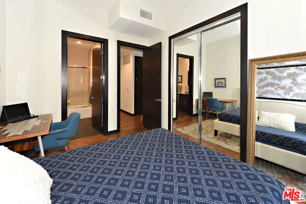 Stunning corner 1 Bed, 2 Bath unit with dramatic floor to ceiling windows and panoramic views of Downtown Los Angeles from the 12th floor. This rare corner unit features nearly 1200sf of living space, tall 11-foot ceilings and hardwood floors throughout. Fully equipped with brand new Washer & Dryer, modern kitchen with stainless appliances and breakfast bar. Primary bedroom has an ensuite bathroom with dual sinks and a massive closet. There is an area off the living room that can be partitioned off and used as a second bedroom area or office, and a second bathroom with massive closet. Custom roller shades as well as blackout curtains throughout the entire unit, upgraded lighting, central heat and AC. RENT INCLUDES 1 PARKING SPACE IN THE BUILDING, WATER, TRASH, GAS. There is also a large storage unit that can be rented for an additional monthly fee. 655 Hope offers city living at its finest with amenities including 24/7 staffed front desk, concierge service, gym, lounge/game room, and roof deck with BBQ, fire pit, and skyline views. Located in the heart of the Financial District of DTLA, within blocks of Whole Foods, 7th & Fig, The Bloc, LA Athletic Club, Hotel Figueroa, Wilshire Grand, Crypto Arena, FIDM, LA Live, Grand Central Market, The Broad, Walt Disney Concert Hall, The Conrad, Grand Park, and more.