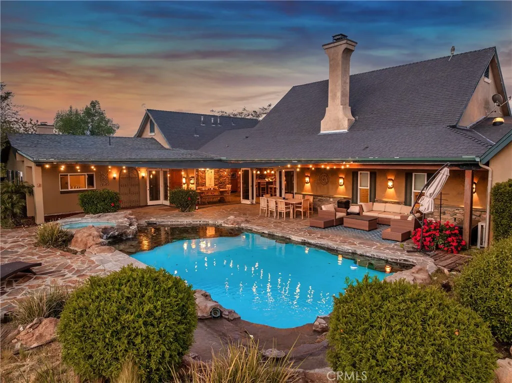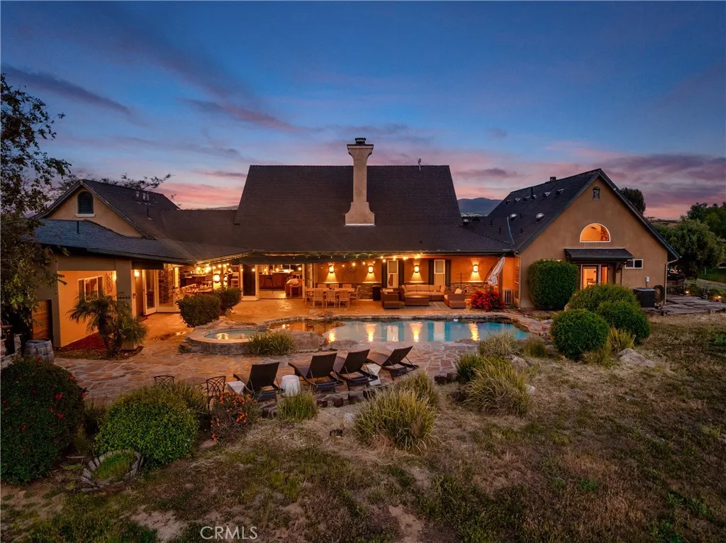Welcome to Peppertree Lane Ranch, a rare 7-acre vineyard-wrapped retreat where privacy, luxury, and effortless indoor/outdoor living come together. Morning hot-air balloons drift overhead; evenings bring quiet sunsets over the vines. Three turnkey residences, resort-style amenities, and extensive equestrian facilities create a setting unlike anything else in Temecula Valley Wine Country.THE MAIN RESIDENCE (4bd/4ba) blends custom stone, wood, and ironwork with true SoCal indoor/outdoor living. A chef’s kitchen with Viking appliances and oversized island opens to an accordion-glass wall for seamless entertaining. Enjoy a pool and spa framed by vineyard views, a spa-style primary suite with covered patio, a second master suite with its own turfed lawn, and a three-car garage.THE COTTAGE (2bd/2ba) near the property entrance offers its own garage, grill area, hammock, bocce court, and picnic space – perfect for guests or weekend getaways.THE VILLA building provides four individually keyed king suites with a shared lobby, each with custom stone grotto showers. The adjoining recreation area includes grills, picnic tables, fire pit, and bocce court.*** Horse lovers will appreciate 15 Stalls with covers, very well built, varying sizes w/a minimum of 18’ x 20’, 60′ round pen, a lighted arena (225’ x 125’)with sound and covered seating, and privately gated access to miles of vineyard trails.*** Plenty of room for vineyards, farm animals, organic gardens, fruit trees or recreation areas.*** Smart-enabled access, mesh WiFi throughout, and exceptional multi-use potential – personal estate, family compound, equestrian center, boutique hospitality, wellness retreat, or creative hideaway. Offered unfurnished; furnishings available.** This property MUST BE EXPERIENCED IN PERSON to appreciate its setting, craftsmanship, and versatility; schedule a tour today.