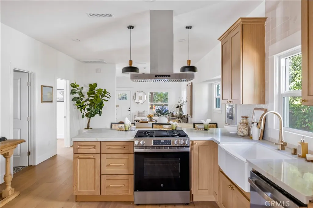 Step into a perfect blend of classic Los Angeles charm and modern design at 5670 Hub Street. This 4-bedroom, 2-bath home has been completely reimagined—featuring new electrical wiring, a new electrical panel, new water supply lines, and new drains for peace of mind and long-term value. Inside, natural light fills every room, accentuating the wide-plank waterproof wood floors, open layout, and carefully chosen finishes. The living room centers around a custom-tiled fireplace and flows seamlessly into a designer kitchen with warm white oak wood cabinetry, quartz countertops, and new stainless steel appliances. The primary suite offers a serene retreat with a spa-inspired bathroom showcasing a double vanity, large tiled walk-in shower, and brushed-bronze fixtures. Each additional bedroom carries the same balance of warmth and simplicity, while the guest bath features statement tile and modern design. Outside, enjoy a landscaped front yard, a private backyard ready for gatherings, and a detached garage offering excellent ADU or studio potential (buyer to verify). Located on a quiet street just moments from York Boulevard and Figueroa Street, you’re close to Highland Park’s favorite cafés, restaurants, and boutiques—plus easy access to Pasadena, Downtown LA, and major freeways. 5670 Hub Street combines timeless character, modern upgrades, and the creative energy of one of LA’s most desirable neighborhoods—an inspired place to call home.