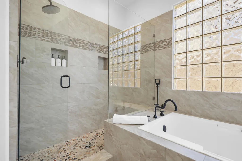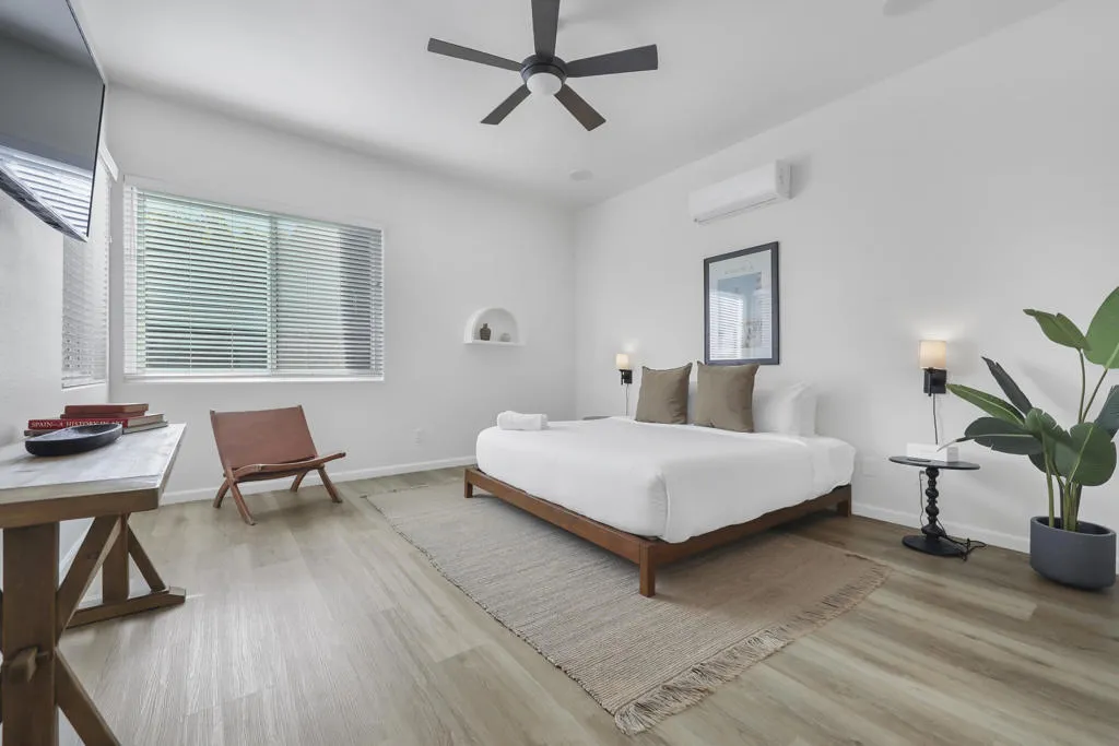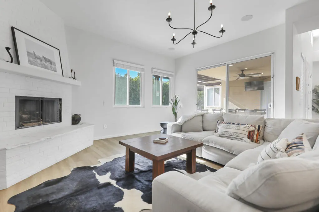 Join us for your first look, this Saturday, the 13th from 10:00 AM-2:00 PM. A private retreat, this beautifully redesigned fully furnished home blends classic Spanish Mission with the refined touches of modern desert living. Mature ficus hedges create a secluded outdoor setting featuring a sparkling pool and spa, fire pit with plush seating, hotel-style chase lounges under a shaded pergola, and a generous banquet dining area with bistro lighting, an ideal backdrop for quiet relaxation or hosting guests. Inside, an open kitchen, dining, and living area showcases warm earth tones, custom Spanish tile, exposed wood rafters, and thoughtfully selected furnishings. The circular parlor room offers 14-foot ceilings, a striking chandelier, a dry bar with wine fridge, and comfortable lounge seating. Five well-appointed bedrooms, two with ensuite baths featuring independent climate control, smart TVs, generous closet space, and convenient bedside lighting. The kitchen is designed for the cook with new stainless steel appliances, ample counter space, and additional seating. The living room includes a large sofa, gas fireplace, and custom lighting, while the dining room hosts a long banquet-style table. With its fully automated pool and spa, lush landscaping, and a floor plan that balances style with comfort, this home delivers a private, resort-like experience in the heart of the Coachella Valley.