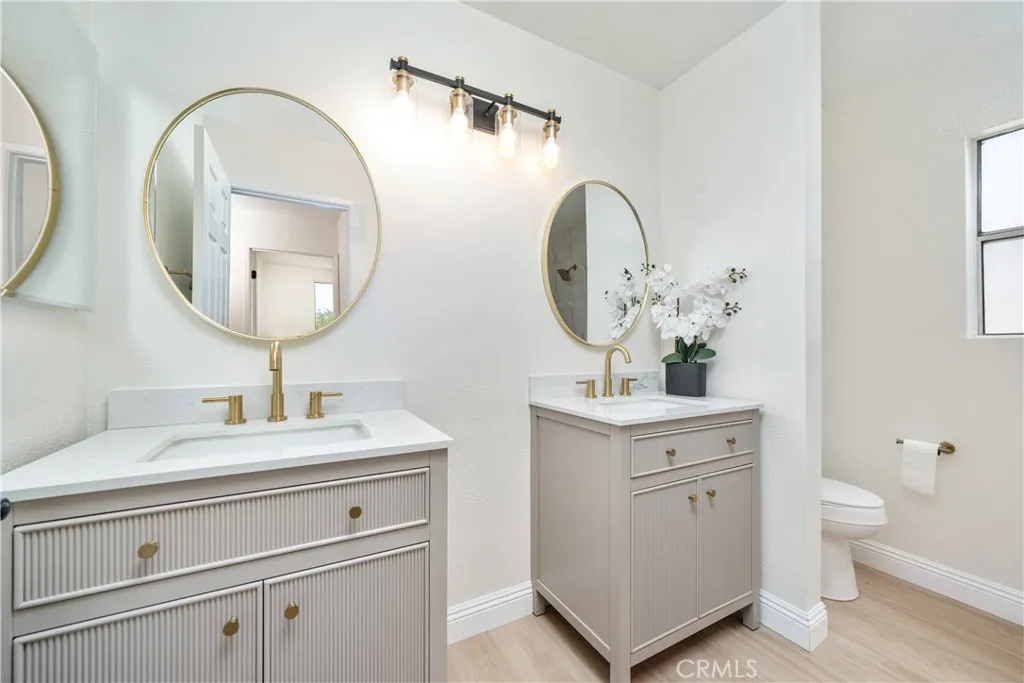 Upstairs, the home offers four generously sized bedrooms and two fully remodeled bathrooms with contemporary finishes and fixtures.
