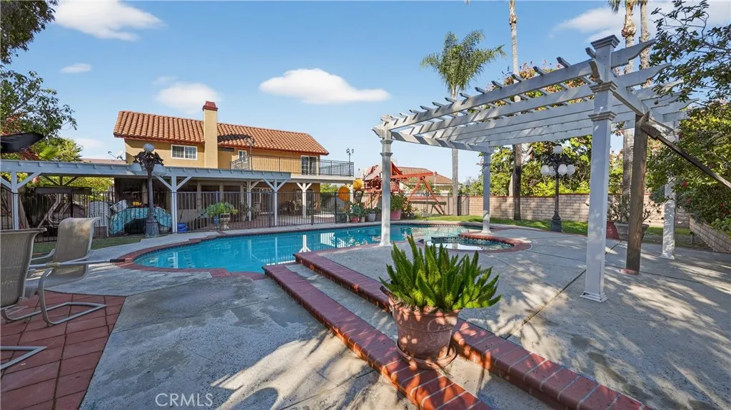 Welcome to this beautiful 2 story home nestled in one of Rowland heights most desirable neighborhoods. Offering 4 spacious bedrooms and 3 full baths with an additional play room or gym room home has vaulted ceilings. This home is a perfect blend of comfort, functionality and entertainment. The back yard has a jacuzzi and pool already has security gates. Backyard also boast 2 covered patios with relaxing palm trees and several mature fruit trees on the sides of the house. All this sits on an over 15K sq ft lot. Down stairs has the living room, family room with fireplace, formal dining room and 1 bedroom and 1 full bath. Upstairs has 3 bedrooms and 2 full baths, the master has a sunk in tub and his and her closets. Garage has lots of cabinets for storage. Home has only had 1 owner and she has done some upgrades. Tankless water heater and retrofit Windows. Plumbing and pool were re done about 8 years ago, pool vacuum and filter were changed 1 year ago.