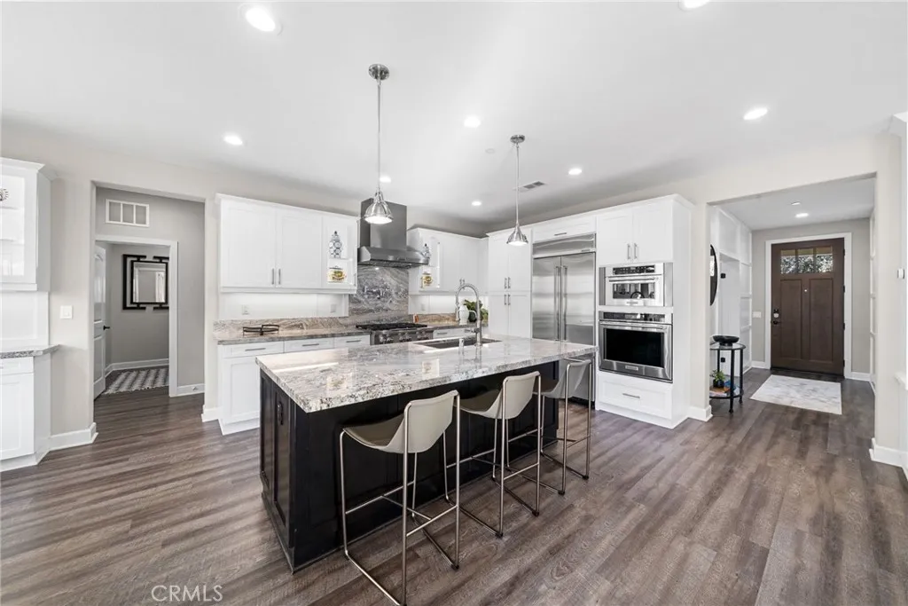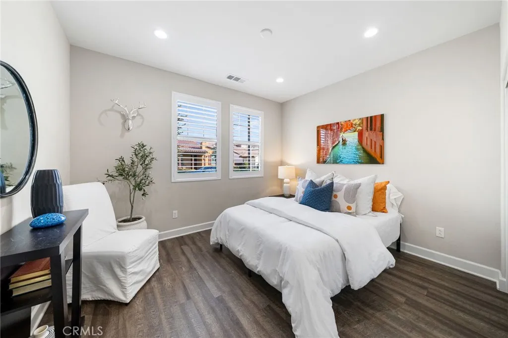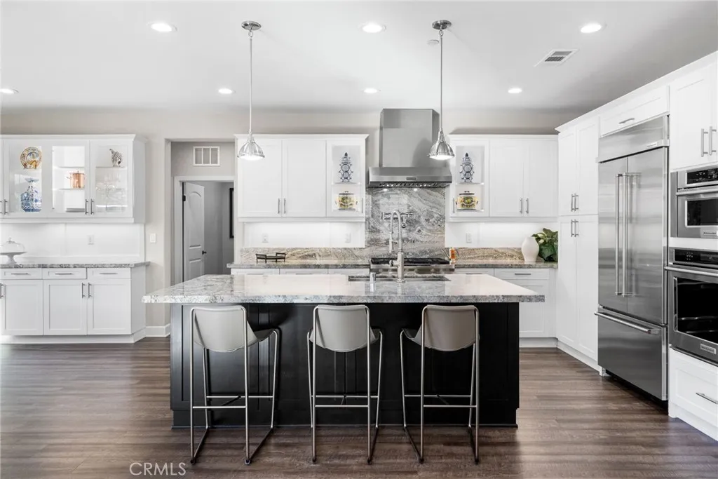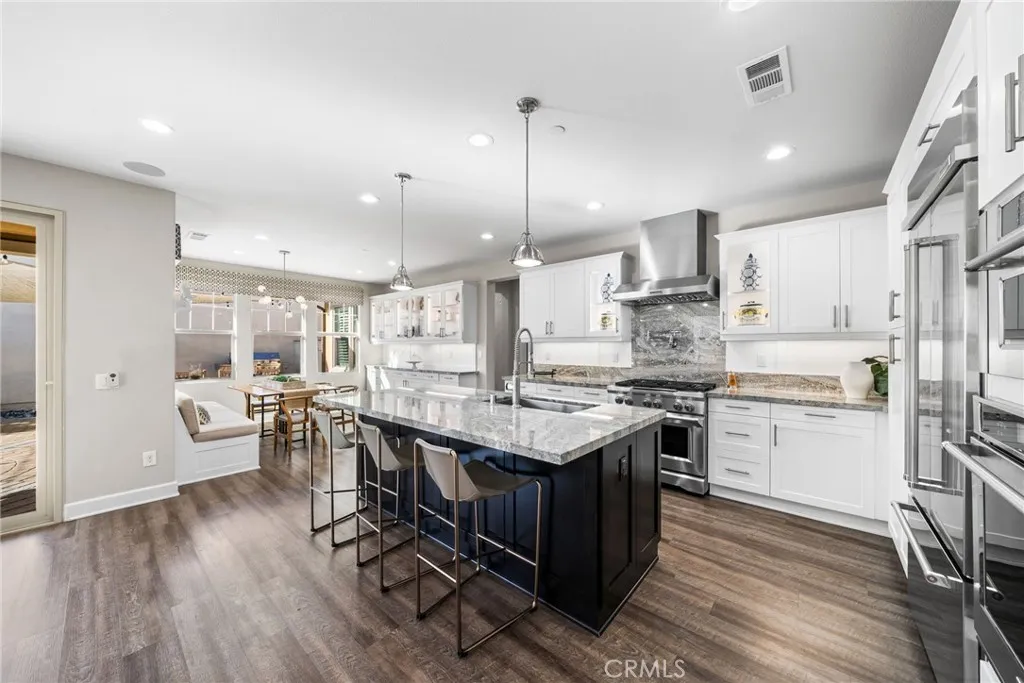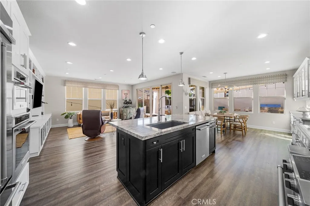 Exceptional single-level home in the vibrant 55+ community of Avocet, Rancho Mission Viejo. This stunning craftsman style home boasts over $150,000 in upgrades and a full DRIVEWAY, blending comfort with luxury and a splash of modern flare. Spanning an impressive 1,659sq.ft. this exquisite 2-bedroom residence with additional OFFICE/3rd bedroom exemplifies elegance and functionality. As you enter, you are greeted by exquisite board and batten paneling that adds a touch of sophistication to the hallway and office. The glass French doors leading into the office invite natural light, creating a bright and inspiring work environment. The thoughtfully designed office features custom built-in cabinets and a dedicated workspace, complete with a hidden compact murphy bed that provides versatility for a 3rd bedroom without compromising space. The generous guest wing boasts a spacious bedroom and a beautifully appointed guest bath featuring a walk-in shower, ensuring visitors enjoy complete comfort and privacy. Culinary enthusiasts will appreciate the gourmet kitchen equipped with sleek granite countertops, DOUBLE OVENS, a pot filler and a chef’s range. Custom lighting, including under-cabinet and accent lighting in the glass cabinets, enhances the ambiance and functionality. The great room is designed for both relaxation and entertainment, featuring a custom entertainment center adorned with accent lighting. Enjoy cozy family gatherings or lively get-togethers with friends in this inviting space. The expansive primary bedroom is your personal retreat, complete with plantation shutters and an en-suite bath that feels like a spa oasis. Dual sinks, a large soaking tub, and a generous walk-in shower with a rain showerhead create a luxurious experience, while the sizable walk-in closet with a window ensures ample storage. This home embraces sustainability with a fully paid SOLAR system, a whole house water filtration system, and a Tesla charger installed in the garage. Enjoy energy savings while caring for the environment! Step outside to your beautifully designed backyard, an entertainer’s paradise featuring a built-in day bed and putting green. The custom stone paver design includes a fire pit and a cozy sitting bench, perfect for evening gatherings under the stars and sun Shades offer all-day comfort. You’ll have access to an array of community amenities like sparkling pools, pristine parks, scenic walking trails, pickleball courts, gyms and so much more.