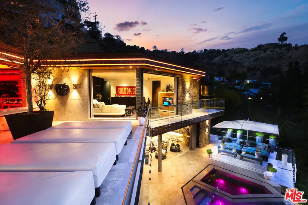 This home and all our listings are available immediately to assist displaced victims from the fires. Available fully furnished and turnkey for short, midterm, or long term lease! Immerse yourself to the exquisite luxury of this intricately-detailed, spectacularly furnished, masterfully decorated, modern masterpiece. The grand open-plan living areas with travertine floors take you through expansive Fleetwood doors onto the sun-washed deck and its large infinity pool, spa and poolside cabana surrounded by gorgeous panoramic views, ideal for lounging or entertaining your family and friends. Retire to one of two second floor en suite bedrooms or the spacious master suite with its outdoor wet bar and entertainment area. The main floor includes a large en suite bedroom, theater, and poker/game room. Your senses will delight in amenities that include the finest finishes imported from around the world and carefully selected artwork that will appeal to the most discerning aficionado. Nestled in the Hollywood Hills this gated compound, located mere minutes from Chateau Marmont, the Sunset Strip, and West Hollywood’s restaurants, shopping and nightlife. Please call for short term pricing.