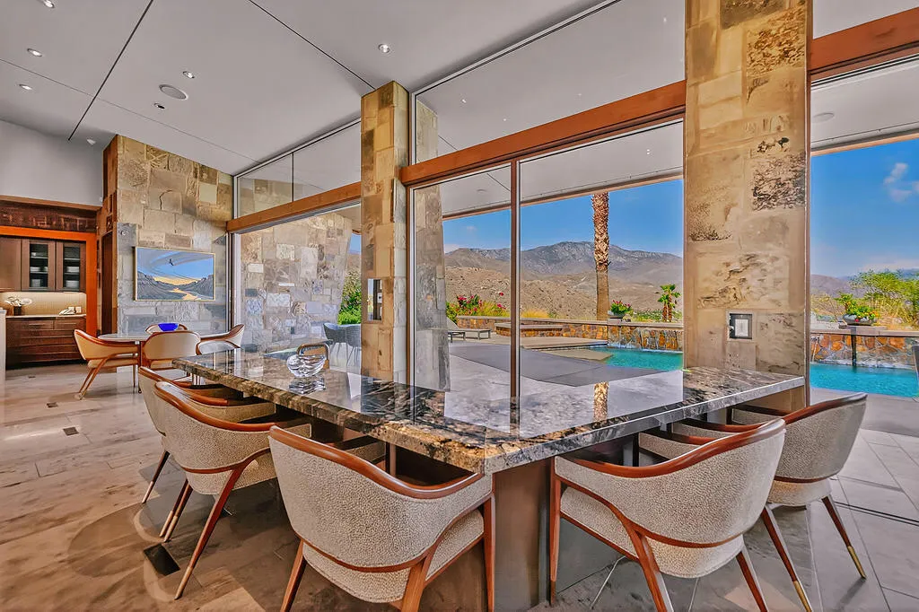 (*Booked JAN FEB MARCH APRIL 2026*) Rare opportunity to book a lavish seasonal vacation rental in the Mirada Estates in Rancho Mirage, California. Owners prefer an October November December booking but might consider booking other months. Panoramic mountain, valley and evening-lit views adjacent the Ritz-Carlton resort. Located on a cul-de-sac in the exclusive guard-gated community of Mirada Estates in Rancho Mirage, the sprawling single-level residence encompasses approx. 5,813 s.f. of spectacular living spaces. Experience a massive great room with floor-to-ceiling walls of glass, automated glass pocket doors, a stunning stone fireplace, and 15′ ceiling heights. Step-down wet bar and a separate formal dining room plus wine room. Stone countertops, custom cabinetry, an oversized two-tier island, a butler’s pantry, casual dining area and commercial-grade stainless steel appliances. Truly state of the art, a new audio/video/security system makes it easy to set the right mood throughout the estate while enjoying added peace of mind. Five ensuite bedrooms and six baths include an attached casita. The phenomenal primary suite boasts city views, two walk-in closets, a 6-head shower, soaking tub. All living areas open to the outdoor living spaces and the saltwater pool and spa. Custom BBQ. Contact agent with questions or to schedule private showing with at least 24-hour notice.