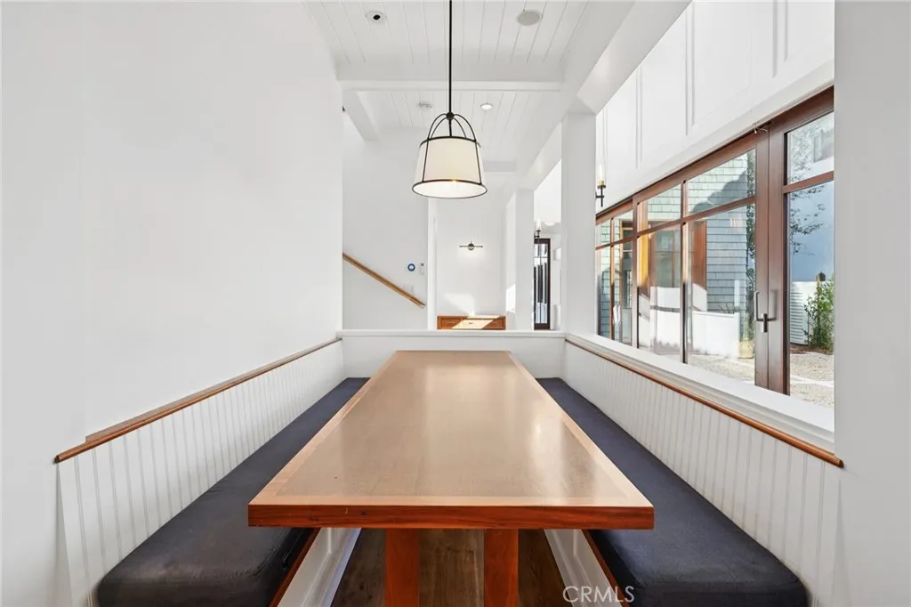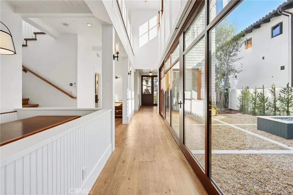 Upstairs, the primary suite offers a quiet sense of escape with dual walk-in closets and a spa-inspired bath. Four additional bedrooms complete the level, including one that opens to a spacious terrace overlooking the pool and lush yard. At the front of the home, a custom bar and entertaining room opens to a welcoming porch — a signature detail of the home and a favorite place to unwind above one of Hermosa’s most cherished streets.