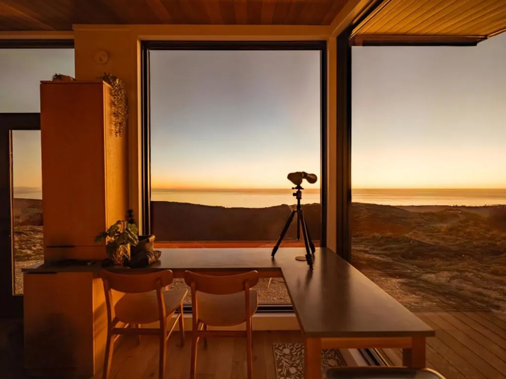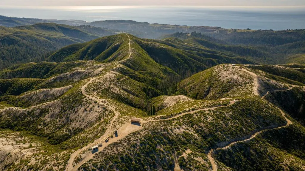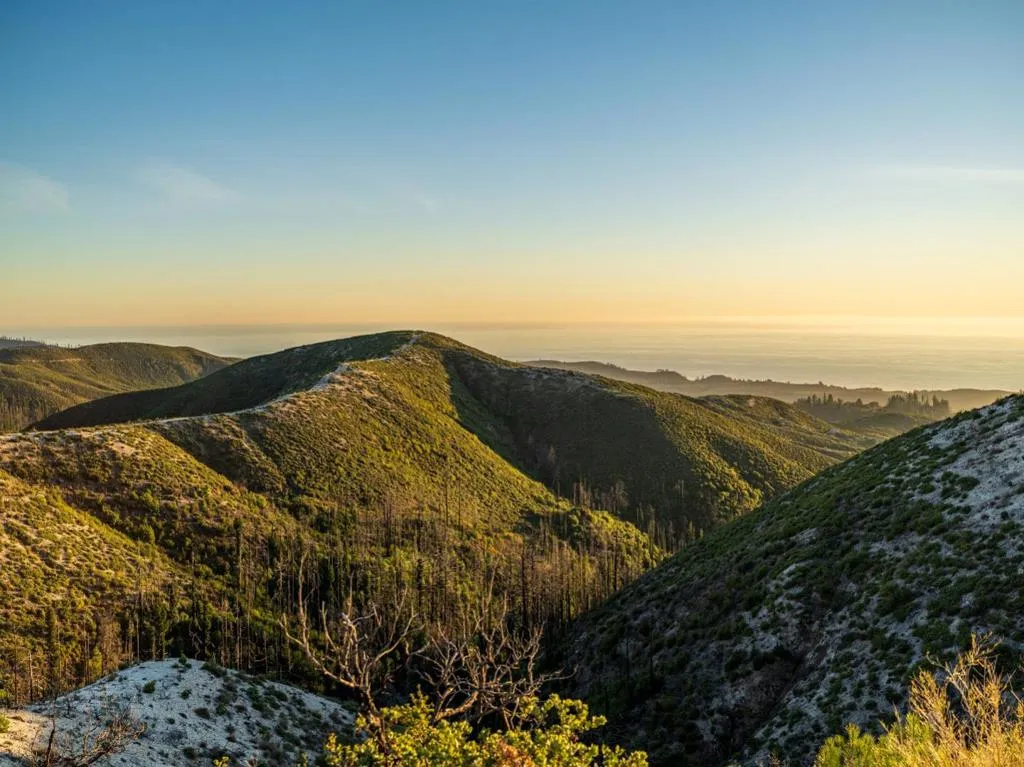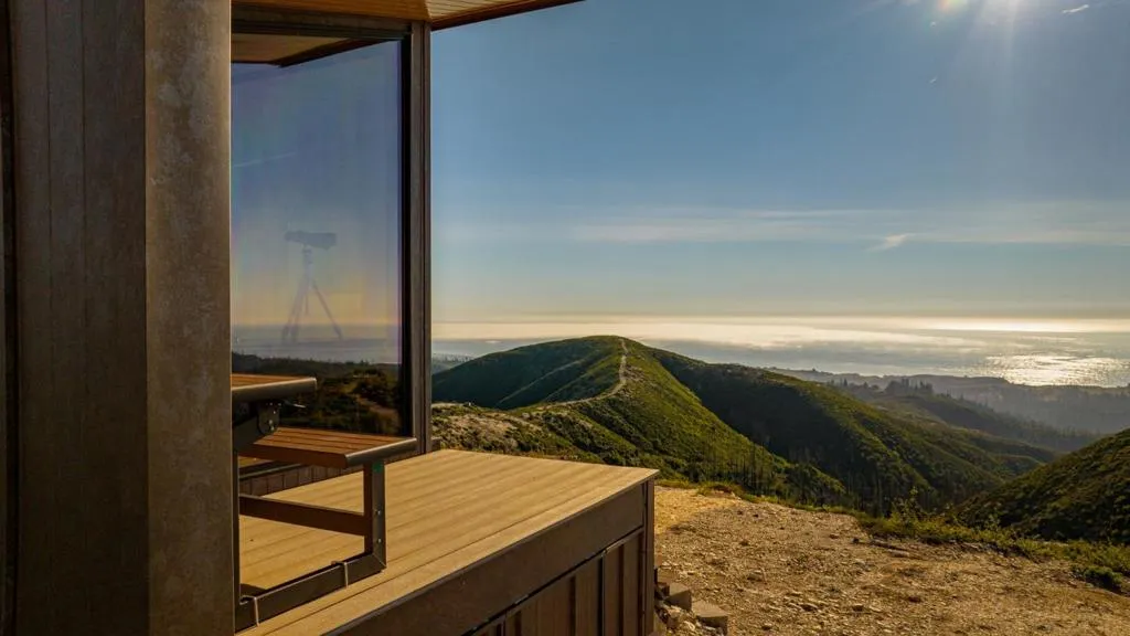 Escape to the Lookout at Big Basin, an off-grid haven surrounded by 360° views of sweeping landscapes and the Pacific Ocean, with all the modern amenities of home and easy proximity to Silicon Valley. This mountain sanctuary is perched on the highest ridge in the range, and every detail has been designed for sustainability without sacrificing comfort, including a fully-owned solar array – sufficient to charge an electric vehicle – and fast satellite internet at the luxury modular home onsite. Overlooking the old-growth forests of Big Basin Redwoods State Park (which borders two sides of the property) and surrounded by thousands of acres of uninhabited land, this site is the perfect serene getaway, with recreational opportunities including hiking sunny trails inaccessible to the public. Accessed year-round via private road, two separate gates encourage isolation, peace, and immersion in nature. Whale-watching in the morning, panoramic picnics in the afternoon, and spotting ships on the horizon at sunset. Once considered as a site to build a private observatory, the dark skies here are ideal for stargazing. This turn-key property offers the freedom of a self-reliant retreat and is a rare opportunity to own this truly one-of-a-kind trophy destination in the Bay Area.