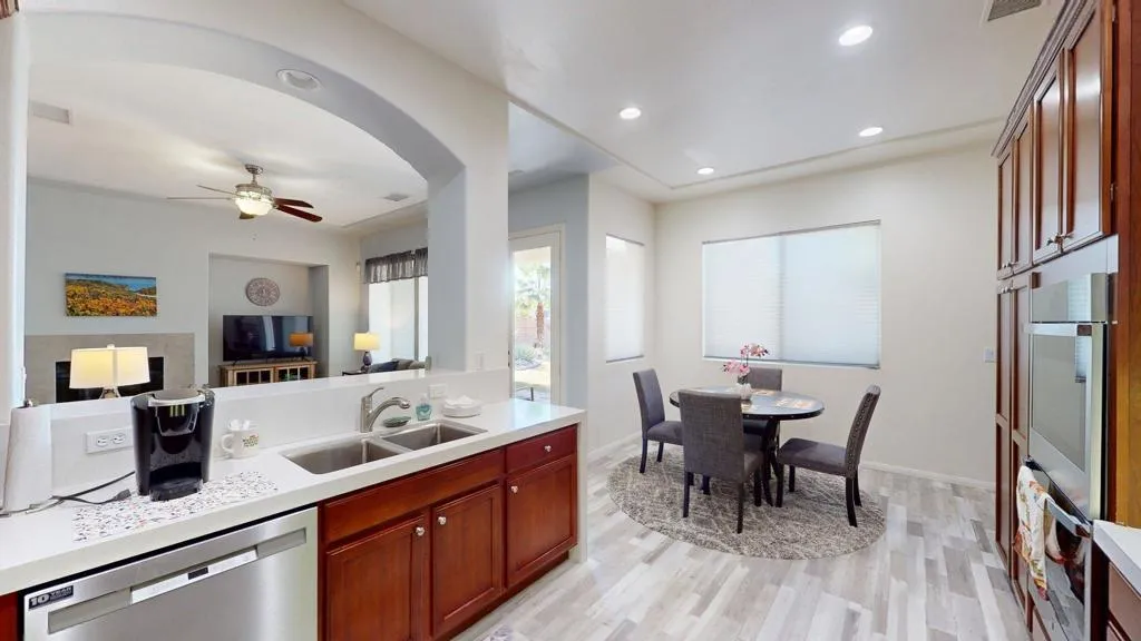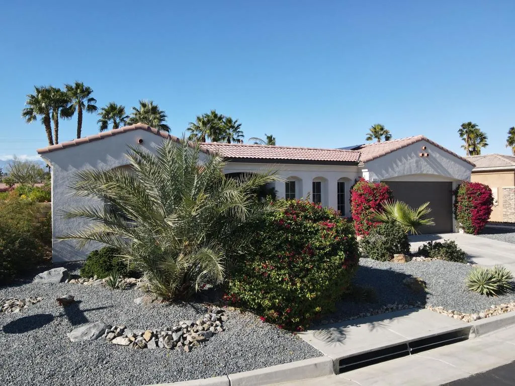 Welcome to your desert oasis inside the highly desirable gated community of Amatista at Capri in Palm Desert. Situated on a beautifully manicured corner lot, this spacious single-story home offers versatile living with 4 bedrooms including an attached casita–perfect for guests, multigenerational living, or a dedicated home office. Enter through a charming gated courtyard where tall palms and fresh landscaping frame your arrival with resort-style elegance. Inside, soaring ceilings and expansive windows bring in glowing natural light throughout the open-concept layout.The gourmet kitchen is the heart of the home, featuring granite countertops, abundant cabinetry, and stainless steel appliances. The adjacent family room provides a comfortable gathering space with views into the backyard, while the formal living and dining areas elevate everyday hosting and special occasions alike. The generous primary suite is privately positioned and includes direct patio access, dual vanities, and a large walk-in closet. Two additional well-proportioned bedrooms create flexibility for family or hobbies.Step outside and experience the best of indoor-outdoor living. The backyard offers a covered patio , ideal for morning coffee, weekend barbecues, or simply relaxing under brilliant desert sunsets. With an oversized garage, you’ll have plenty of space for vehicles, storage, or your golf clubs and toys for exploring the valley. Residents of Amatista appreciate low HOA dues and a central location close to world-class golf, shopping, dining, and entertainment–including the McCallum Theatre, Indian Wells Tennis Garden, El Paseo, and quick I-10 access for easy travel. This is desert living at its finest–inviting, comfortable, and move-in ready. Come see why this home stands out in one of Palm Desert’s most sought-after neighborhoods.