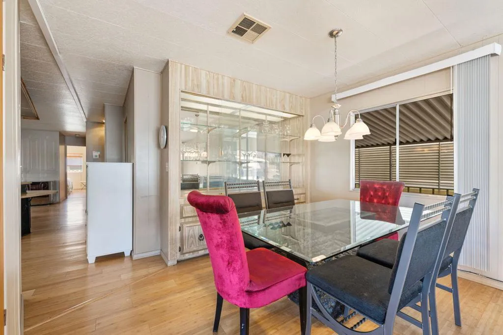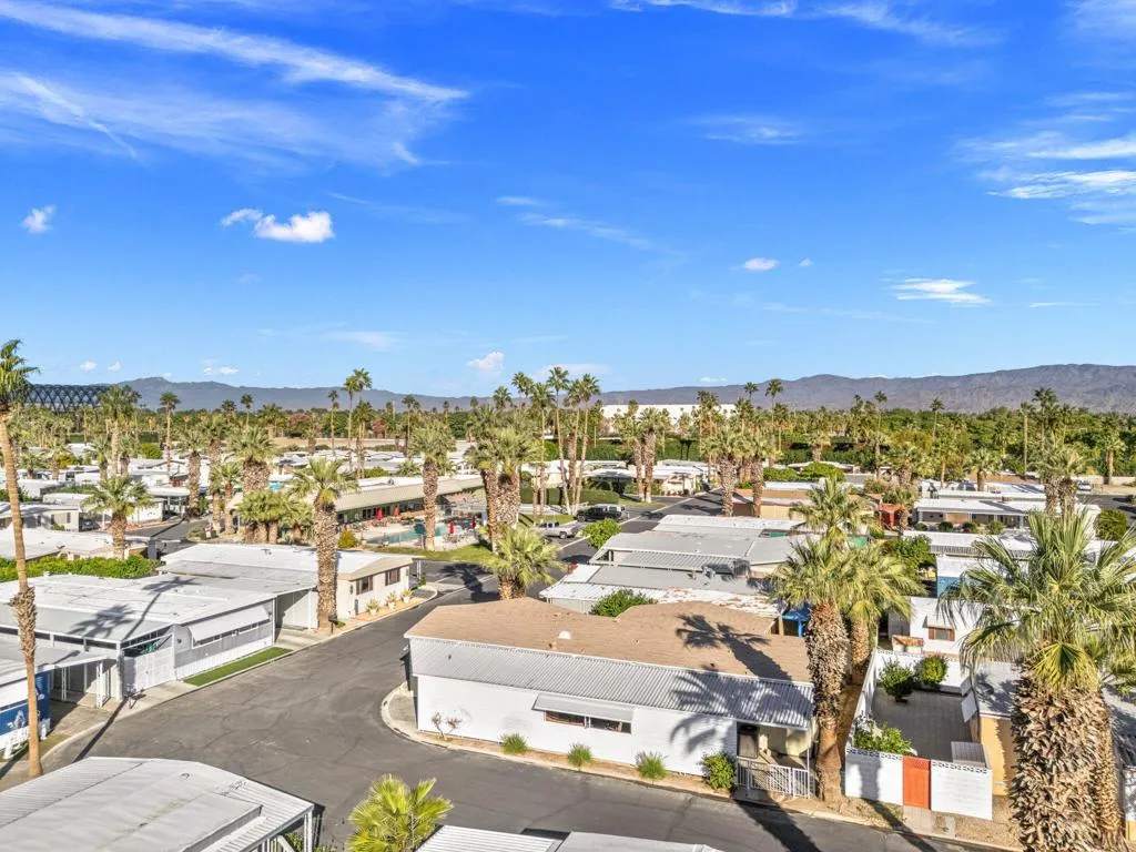 Welcome to Palmdale, an active adult community featuring outstanding social amenities such as a full-size pool with a separate spa, shuffleboard, and a clubhouse that hosts numerous events throughout the year. This home stands out as one of the largest in the community, offering 3 bedrooms, 2 bathrooms, an oversized family room, and an open kitchen complete with a wet bar and extra seating at the counter. A spacious living room includes a second dining area, multiple windows for abundant sunshine, and scenic views. Enjoy two outdoor patio spaces perfect for entertaining guests! Improvements include newer shutters, HVAC, flooring, lighting, toilets, hardware smoker BBQ interior doors & more. The property sits on a corner lot with carport parking and an additional area suitable for a golf cart or recreational items. RV parking may be available at back of community. Conveniently situated just steps away from the clubhouse, pool/spa, Polo grounds, La Quinta Old Town, the newly revived historic downtown Indio, golf courses, and shopping destinations. Welcome home!