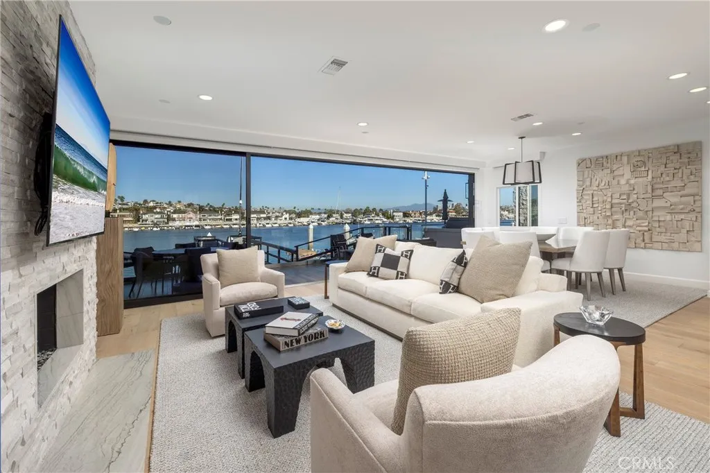 704 Via Lido Nord presents an extraordinary bayfront opportunity on the highly coveted eastern tip of Lido Isle—newly enhanced to elevate its already exceptional appeal. Showcasing spectacular 180-degree views of Newport Harbor, this coastal contemporary residence enjoys 35 feet of premium frontage along the renowned Nord channel, offering an ever-changing panorama of sailing activity, sparkling evening lights, and distant mountain silhouettes. Upon arrival, the home’s refined yet relaxed coastal style and breathtaking sightlines immediately impress. Recent improvements thoughtfully elevate the property while preserving its timeless design, including the installation of a Fleetwood window system, automated shades, and various upgraded finishes—creating a residence that feels beautifully renewed and impeccably maintained. Nearly 3,200 square feet of sophisticated living space is defined by an open, flowing floor plan, high ceilings, designer details, elegant stonework, and hardwood flooring. The expansive Fleetwood sliders open wide to frame unobstructed harbor views and welcome abundant natural light. The main level is designed for effortless entertaining and everyday living, featuring a spacious living room with seamless indoor-outdoor connection, a dining area positioned to capture the views, and a gourmet kitchen appointed with top-tier appliances. A desirable first-floor bedroom suite—ideal as an office or guest retreat—adds versatility. Additional highlights include an elevator, upgraded systems, and meticulous craftsmanship throughout. The waterfront patio showcases a redesigned deck and updated seaside seating, creating an inviting vantage point for year-round enjoyment. The private dock accommodates two vessels, offering exceptional access to the harbor. Upstairs, the luxurious primary suite captures sweeping views from a generous balcony and includes a fireplace, spa-inspired bath, and large walk-in closet. Two additional en-suite bedrooms complete the second level. Ideally located near Lido Marina Village’s dining and boutiques—and just steps from the Lido Isle private beach, clubhouse, and park—this residence offers premier bayfront living in one of Newport Beach’s most sought-after waterfront settings.