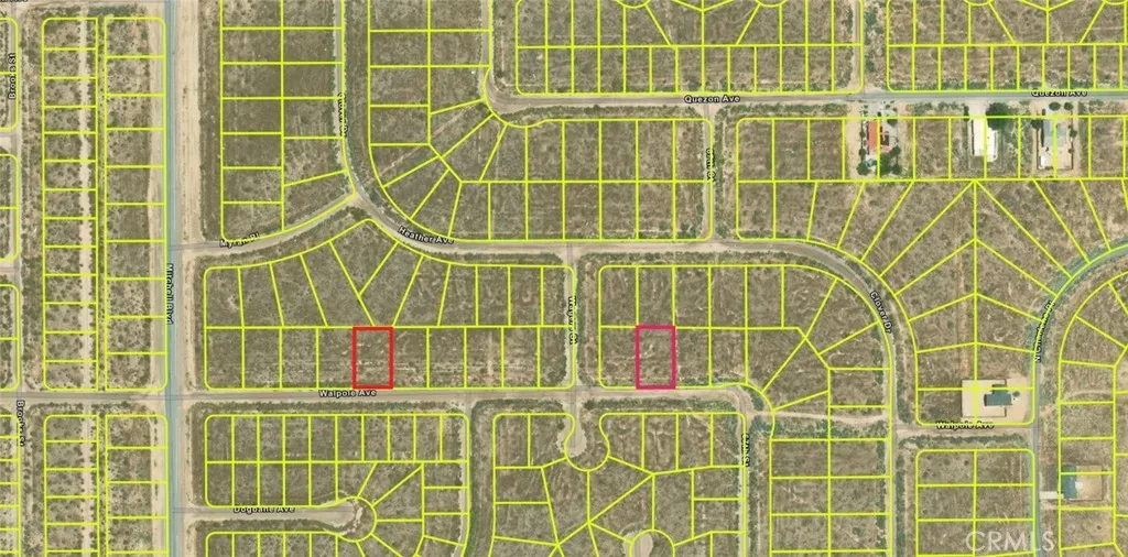 12,000+- sq feet vacant lot plus an additional 11,500 sq feet vacant lot in the north side of California City just east of Mitchell Blvd. Both are on Walpole Ave. Water to the lots. Buyer to verify utilities. The price listed is for both lots.