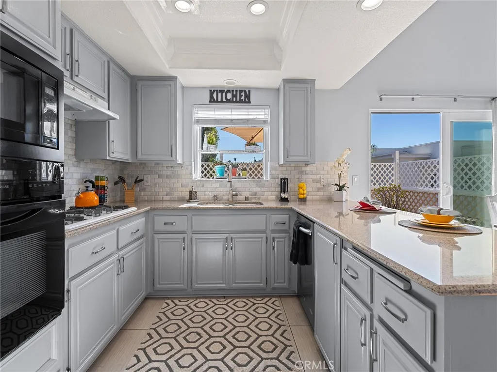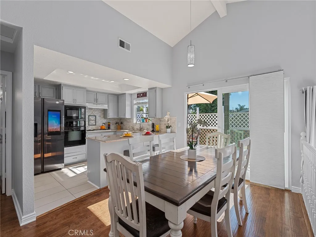 Step into soaring vaulted ceilings that crown the open living, dining, and kitchen areas, creating a bright and airy atmosphere. South-facing orientation ensures the home is sun-soaked all day long, with natural light streaming through expansive windows. A huge deck off the dining room extends your living space outdoors—perfect for al fresco meals, entertaining, or simply enjoying the coastal breeze. The updated kitchen features sleek quartz countertops, a charming garden window, recessed lighting, breakfast bar, and a separate pantry for ample storage. The oversized primary suite is a true retreat, complete with soaring vaulted ceilings, custom closet organizers, dual sinks, and a large walk-in shower. Downstairs, two additional bedrooms provide flexibility—one generously sized and the other with direct access to a private patio. A full bath with dual sinks, laundry area, and extra storage complete the lower level. The oversized garage offers taller-than-average height, ideal for additional storage or even a car lift. Outside, enjoy a grassy front yard and a large concrete area behind the home—big enough for basketball-style play or other recreational uses. This home has been meticulously maintained with high-ticket upgrades, including: Newer HVAC, tankless water heater, owned solar panels, electric car charger, and hardwood floors. Situated in the highly desirable Jefferson School District, this home is convenient to everything the South Bay has to offer and less than 2 miles from the beach!