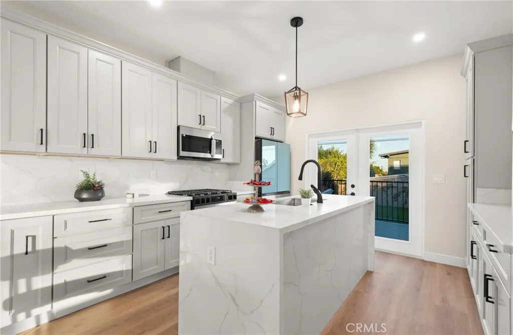 Welcome to 5414 Hillcrest Drive, a beautifully remodeled Classic California home that blends timeless 1930s character with modern comfort and design. Step inside to an open-concept living area filled with natural light, featuring vaulted ceilings, wide-plank flooring, and elegant arched details. The bright living room centers around a white-tiled fireplace and flows seamlessly into a newly renovated kitchen with quartz countertops, custom cabinetry, and a spacious island perfect for gatherings. Both bathrooms are finished with designer tile, matte black fixtures, and high-end finishes. Each bedroom offers ample space and soft natural tones for a calm, welcoming atmosphere. Enjoy a private backyard and a detached over sized garage with potential for an ADU or studio. Conveniently located near Mid-City, Culver City, and Downtown LA, Crypto.com Arena, LAX, So Fi Stadium, Intuit Dome, and the Forum. This move-in ready home combines warmth, style, and modern livability in one perfect package.