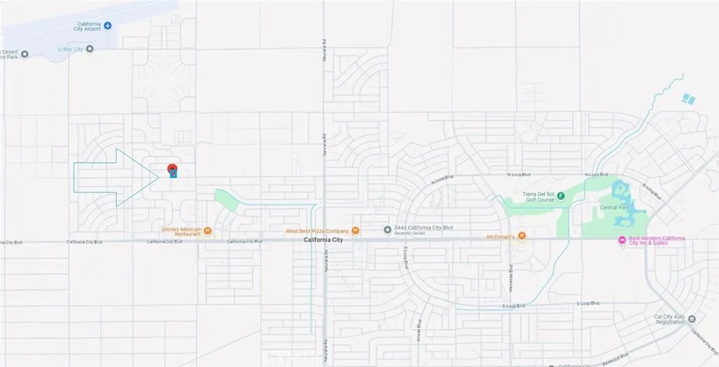 Directions: Start at 7100 Poppy Blvd, California City, CA 93505 then enter that address as the beginning address into your phone, then add these GPS coordinates as the ending address: 35.132978, -118.006925. You will be at the front of the lot. The lot is on the north side of Poppy Blvd.