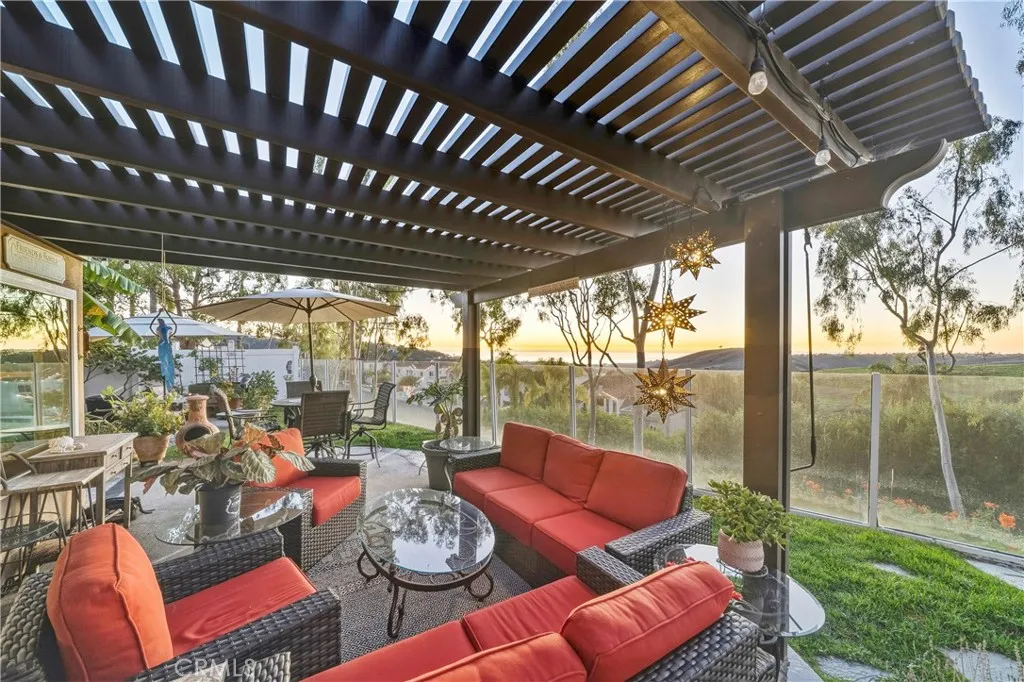 A truly exceptional opportunity is this meticulously enhanced, single-level residence, with panoramic ocean, sunset and Catalina Island views. This property represents a rare offering of coastal sophistication and tranquility. Showcasing a synthesis of style and comfort throughout, at the heart of the home, is a commanding great room that encompasses a updated chef’s kitchen with granite countertops and upgraded appliances, a spacious and inviting dining area and a grand living room, all designed to capture breathtaking, sit-down ocean vistas. The primary suite provides a private sanctuary with its own gorgeous ocean and Catalina views, is generously proportioned and features a luxurious upgraded, spa-inspired ensuite adorned with a dual sink granite vanity and great natural light. An ample walk-in closet completes the primary suite. The guest bedroom has great space and light, and the guest bath also has that spa-inspired touch with warm granite counters. The interiors open graciously to a private, expansive wraparound rear yard creating seamless indoor-outdoor living. Here, the meticulously landscaped grounds and custom clear acrylic fencing provide a serene backdrop for the shimmering Pacific Ocean and the majestic outline of Catalina Island resting beyond the hills. Exquisite exterior details begin at the gated courtyard entry, featuring elegant flagstone and bullnosed brickwork, providing a charming yet secure welcome. The property is completed by a two-car-attached garage, fitted with custom rollup doors. Thoughtful design is evident in the excellent abundance of storage including closet spaces and custom storage solutions integrated throughout the home. Located in the “Spanish village by the sea,” this residence offers access to the quintessential southern California lifestyle. The property is mere minutes from San Clemente’s finest beaches, renowned for their world-class surfing and pristine sands, as well as the historic pier. The surrounding area boasts award-winning schools, lush parks, exceptional golf courses, and a vibrant downtown area featuring unique shopping and dining experiences. Situated within the desirable Villagio community, residents benefit from no Mello Roos and low HOA dues, enhancing the overall value proposition of this exceptional home. This exquisite property, where pride of ownership is evident, is an absolute must-see for discerning single-level, ocean-view buyers seeking an unparalleled coastal retreat. Welcome home.