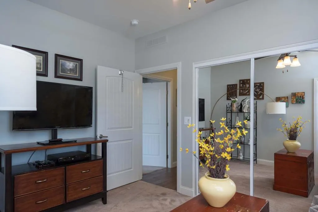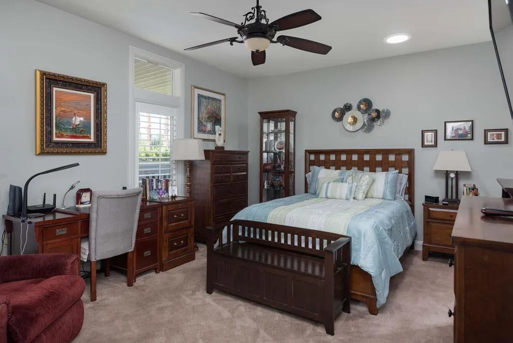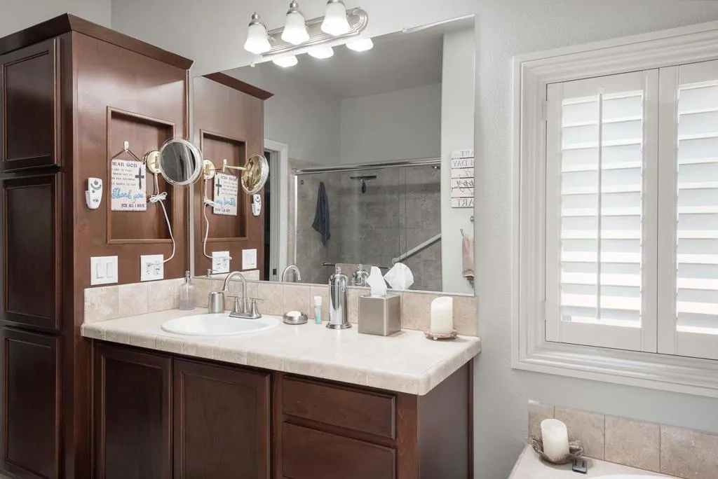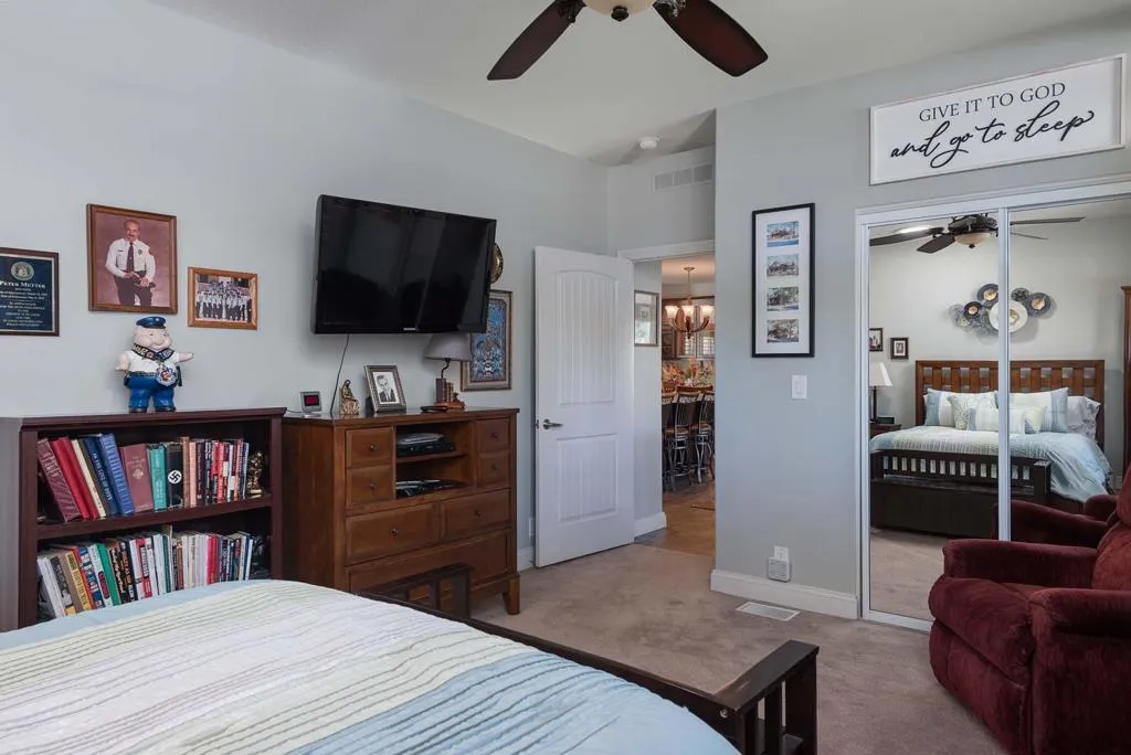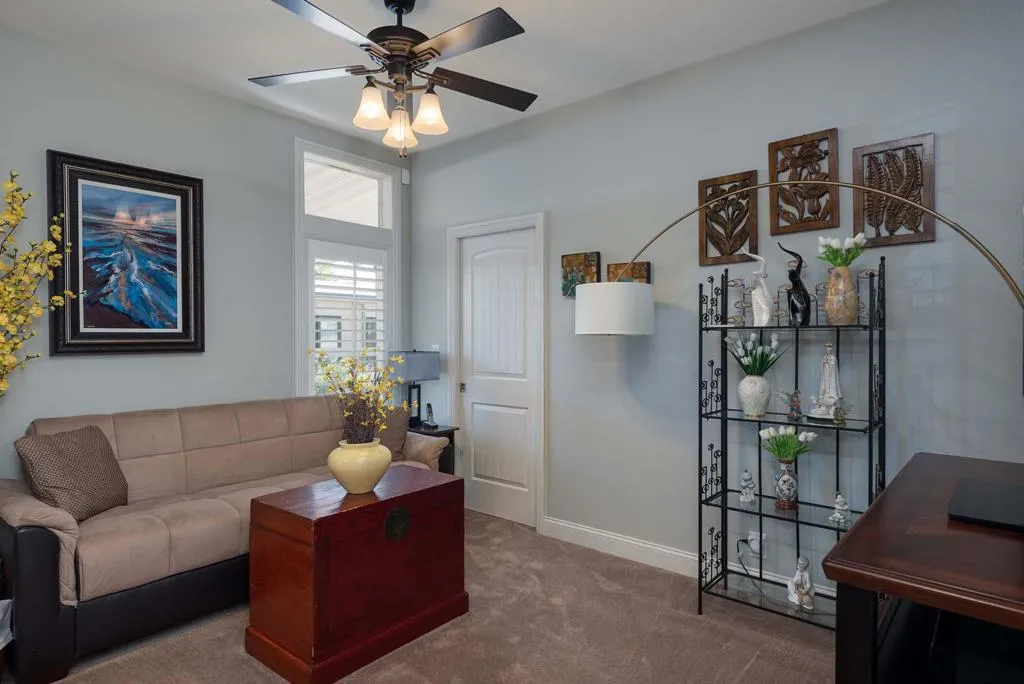 Truly One of a Kind Manufactured Home in Palm Springs! This 2012 Crestline model sits high on its lot with Fantastic Western and Southern Mtn. Views! There are stained and sealed driveway and sidewalks which leads to the Massive Front Porch, perfect for entertaining, morning coffee or an evening meal. This covered patio looks out onto the private yard with fountain and I say WOW every time I’m there. This porch has seating for 15-20 people and is a great selling feature! The porch slider leads you into the large open concept Living area to include The Living and Dining Rooms and efficient kitchen with oversized center island. There is tons of storage and cupboards throughout the kitchen and island areas. The carport entry leads to the laundry area with a full-sized raised Washer and Dryer set along with a very large pantry closet. There are two Primary Suites at either end of this unit. One Primary Suite is Light and Bright on the South side with room for a sitting area, a desk area and plenty of closet space. It’s En suite has a step in shower with single vanity and storage. There is a third bedroom with large closet and hallway half Bath. The other Primary Suite also has a desk area and a large walk in closet. This Suite includes a oversized garden tub and tiled walk in shower and vanity. The home features raised panel doors along with High End electrical blinds both on the Western side of the Exterior Porch and the Western windows in the home. There are wooden shutters throughout. The extended carport would fit 3-4 cars and there are three extra guest parking spots right across the street. There are two large storage closets with built in shelving,one at the end of the carport and the other on the backside of the house. There are three separate entrances to the under side of the home with tons of room to store yard or personal items and easy access to underside of home. I guarantee you will NOT find another property like this one. This community is close to shopping, Trader Joes, Target and local restaurants. About 10 minutes to PS Int’l Airport and easy freeway access on Gene Autry Dr. The is an active social calendar at the clubhouse, there is a pool and spa and the adjacent recently completed CV Link!! Palm Springs View Estates require an application process for income and credit. Monthly lot rent will start around $650, please make an offer Today!!
