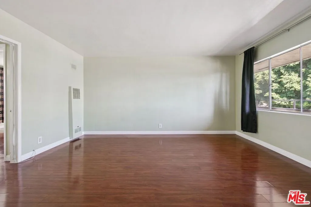 This top-floor unit is the quintessential Hollywood apartment, with modern updates like wood flooring, paired with a vintage 1950s bathroom that’s been well preserved with time. This spacious one bedroom, one bathroom apartment features an extra large living room, a coat closet, and the charm of original built-in storage in the hallway. The kitchen features a double sink, 4-burner range with oven, and a refrigerator with freezer, as well as an adbundance of upper and lower cabinetry for storage. A dedicated dining area is located between the kitchen and living space, and windows on both sides of the unit provide natural light with treetop views. The generously sized bedroom and full bathroom are located off the living space, separated by a small hallway and door that can be closed for added privacy. The bathroom features beautiful blue tile, a shower-over-tub combination, a built-in storage cabinet, and floating shelves. A conveniently located community laundry room can be found on the first floor, and each unit has their own private mail box. Situated on a corner lot surrounded by single-family homes and the local police station, this quaint two-story complex offers just 13 units. In an unbeatable location in the heart of Hollywood, just two blocks from Sunset Blvd, and hot spots like Iki Nori, Superba, and Mother Wolf! You can grab coffee at Groundwork, catch a show at the Hollywood Palladium, and get groceries at Trader Joe’s – all without leaving your neighborhood! Convenient access to the Metro and 101 freeway makes it easy to commute or explore all that LA has to offer! Available for immediate move-in.