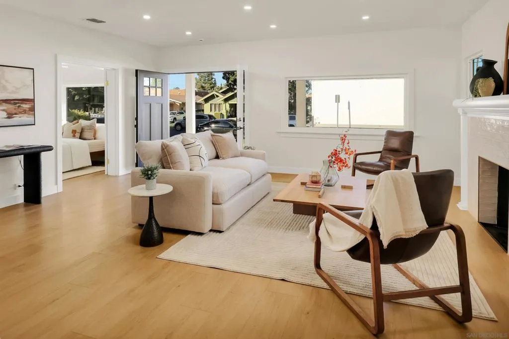 Beautifully reimagined 3-bedroom + den home offering modern design, thoughtful upgrades, and turnkey living in a central Los Angeles location. This fully renovated residence showcases fresh exterior paint, updated lighting, and enhanced curb appeal that welcomes you in. Inside, the home features new LVP flooring, fresh interior paint, recessed lighting, and a striking tiled fireplace with a white oak mantel anchoring the main living space. The open-concept chef’s kitchen is a true showpiece, complete with a dramatic waterfall island, dual farmhouse sinks, upgraded appliances, pot filler, custom window nook, and abundant storage—perfect for entertaining and everyday living. All bathrooms have been fully remodeled with new tile flooring, vanities, fixtures, mirrors, toilets, exhaust fans, and beautifully finished shower tile work. Additional upgrades include dual-pane windows, updated interior doors and hardware, refreshed stair railings, accent walls, wrapped beams, painted built-ins, and replaced outlets and switches for a clean, cohesive finish throughout. This move-in-ready home blends style, function, and quality craftsmanship, presenting an excellent opportunity to own a fully upgraded property in Los Angeles.