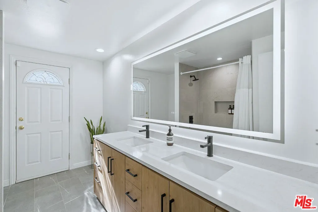 Nestled in the prestigious Highlands of Granada Hills, this beautifully updated single-story home offers 5 bedrooms and a thoughtful floor plan designed for both comfort and style. A skylight and expansive sliding doors fill the living room with natural light, creating a bright, airy gathering space that seamlessly connects indoors and out. The remodeled kitchen serves as the heart of the home, showcasing a spacious walk-in pantry, stunning waterfall countertop, and premium stainless steel appliances including a double oven and Wolf gas range. The primary suite offers a peaceful retreat with a walk-in closet and a fully renovated ensuite bathroom featuring a smart mirror and modern finishes. The second bathroom has also been recently renovated with stylish upgrades. Four additional bedrooms provide flexibility for family, guests, or a home office. Step outside to a serene backyard with a covered patio and fruit trees yielding tangerines, grapefruit, and sweet lemons – perfect for relaxing or entertaining. Recent upgrades, including dual-pane windows, plumbing and sewer line improvements, and a newer roof and A/C system, highlight the home’s exceptional care and quality. Located near Knollwood Country Club, O’Melveny Park, and top-rated schools such as Van Gogh Charter Elementary and Robert Frost Middle, this home beautifully combines lifestyle, location, and value into one outstanding offering. ***Current owners have a 4.9% VA loan that may be assumable for a VA-eligible buyer