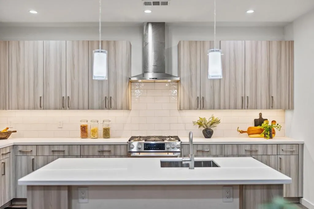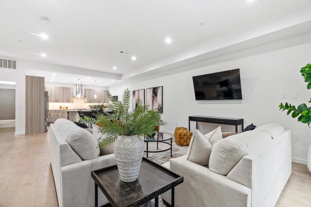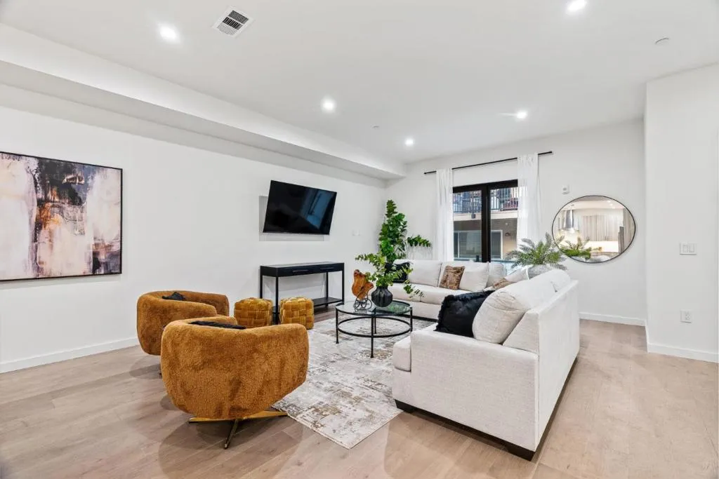 Sophisticated modern living defines 908 Woodside Rd, a beautifully designed 3-bedroom, 3-bath residence offering approximately 1,700 sq. ft. of refined interior space. Thoughtfully crafted with soaring 910 ft ceilings, wide-plank European white oak hardwood floors, sleek glass interior railings, and Level 5 interior wall finishes, this home delivers a polished, contemporary aesthetic throughout. Oversized high-performance triple-pane windows, paired with enhanced insulation between walls and floors, create a serene and light-filled living environment. The gourmet kitchen showcases top-of-the-line Bosch appliances with gas oven/range, quartz countertops with a full-height premium backsplash, custom soft-close cabinetry with dovetail drawers, and elegant under cabinet lighting. Spa-inspired bathrooms feature frameless glass showers, Hansgrohe fixtures, and quartz surfaces. Designed for seamless indoor-outdoor living, the home offers a 96 sq. ft. balcony off the main living area and an additional 170 sq. ft. private balcony off the primary suite. A secured entry gate, fenced perimeter, and attached 2-car garage pre-wired for EV charging complete this exceptional offering.