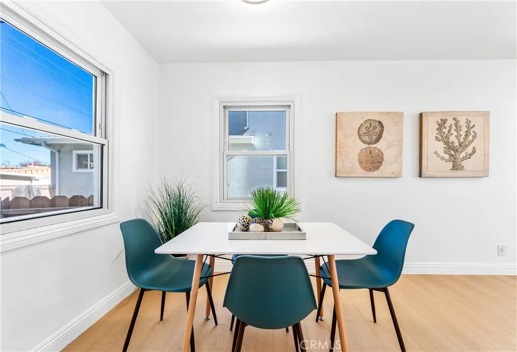 Tucked into one of Redondo Beach’s most charming and sought-after neighborhoods, this thoughtfully remodeled home borders the lush greenery of Franklin Park, a beloved community green space just steps from your door. Mature trees rise above the backyard fence, creating a peaceful, park-side setting where the air feels fresh and the surroundings feel special. Franklin Park offers open grassy areas, picnic spots, walking paths, and shaded seating, making it a favorite gathering place for the neighborhood. Step inside to discover a home that flows with intention and light. The living room is bright and inviting, anchored by an original floor-to-ceiling stone fireplace with a raised hearth and framed by a beautiful bay window. New flooring and recessed lighting enhance both warmth and modern comfort. The dining nook is wrapped in windows and designed for effortless everyday living, connecting naturally to both the living room and the backyard. At the heart of the home, the sleek white kitchen balances beauty and function with brand-new cabinetry, stainless appliances, a classic subway tile backsplash, recessed lighting, and gorgeous wood-look flooring. A walk-in pantry and integrated stackable washer and dryer add exceptional convenience, while a sliding door opens directly to the backyard and serene park-tree views.