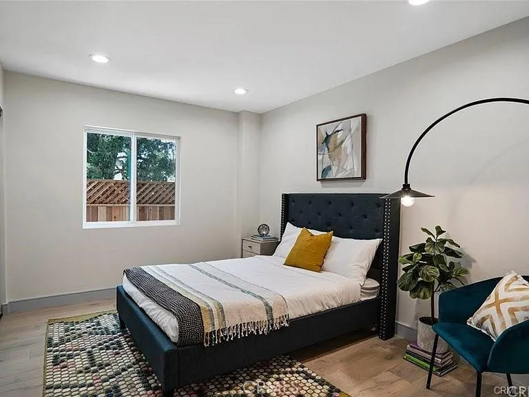 Beautifully updated and thoughtfully expanded, this single-story modern farmhouse sits on a tree-lined street in prime Sherman Oaks. The 4BR/3BA residence features an open, light-filled layout with a designer kitchen showcasing Quartz countertops, custom cabinetry, stainless-steel appliances, and bar seating that connects seamlessly to the family room. The family room offers built-ins with a wine fridge, surround sound, custom lighting, and a sleek fireplace, with sliding doors that open to the backyard for effortless indoor/outdoor living,The serene primary suite includes a vaulted ceiling, custom accent wall, spacious walk-in closet, and a spa-inspired bath with curated tilework. Outside, the private backyard is a true retreat with lush landscaping, mature trees, and a sparkling pool—perfect for relaxing or entertaining. Finished with smart-home features, upgraded lighting, and stylish finishes throughout, this home blends comfort, design, and functionality. Ideally located moments from top restaurants, boutique shops, and the Westfield Sherman Oaks.