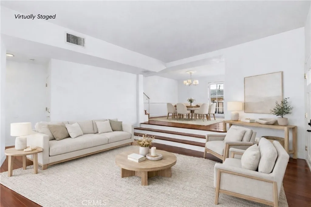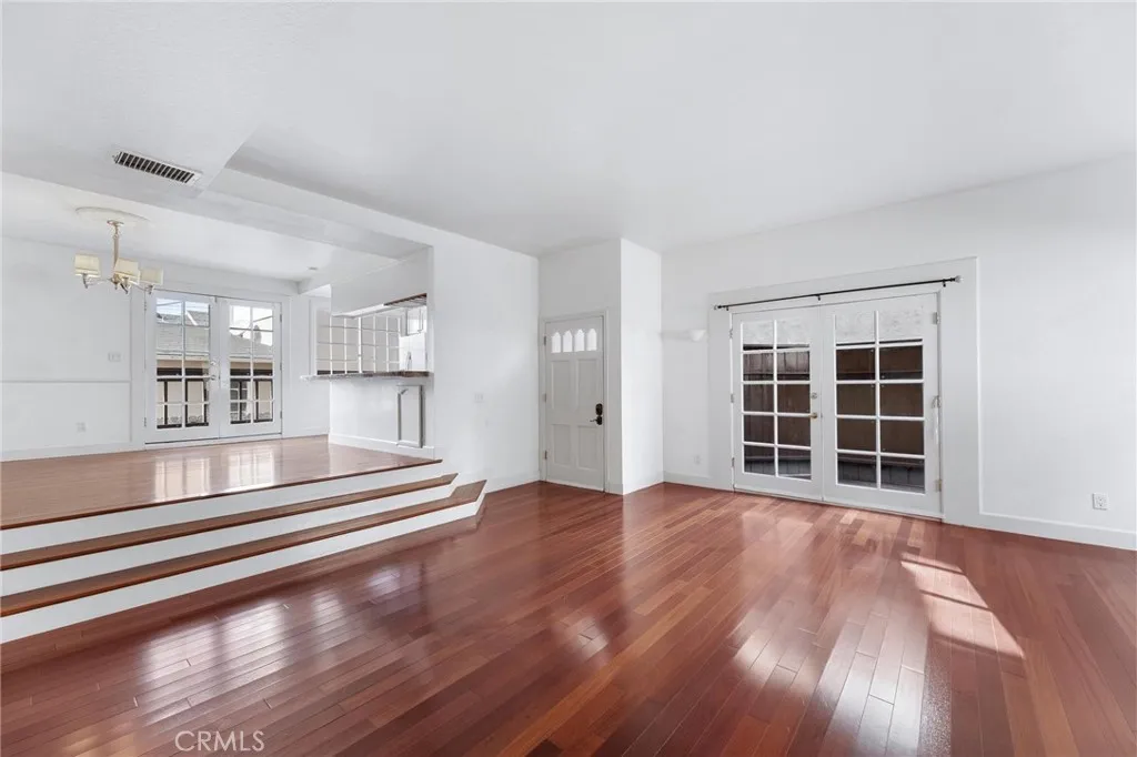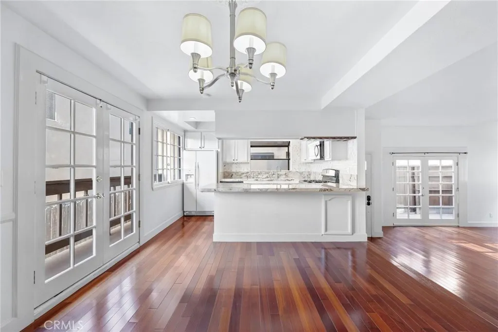 Quietly situated as a rear-unit townhome, 1515 Artesia Blvd Unit #2 is a light-filled and charming retreat. Upon entry, the home is bathed in natural light and features hardwood floors throughout. The living room includes a fireplace and French doors that open to a private outdoor patio, creating indoor-outdoor flow. Just two steps up, the dining area features a second set of French doors leading to a private terrace and connecting to the adjacent kitchen, which offers ample storage and breakfast bar seating. A powder room and direct access to the two-car garage complete the main level. Upstairs, both bedrooms feature en-suite bathrooms. The primary suite offers vaulted ceilings, a private outdoor terrace, generous natural light, a large walk-in closet, and an en-suite bathroom with a glass-enclosed shower. The secondary bedroom features high ceilings, an en-suite bathroom, and ample storage. An upstairs laundry room with built-in storage and a skylight providing additional natural light completes the upper level. With easy access to downtown Manhattan Beach shops and dining, as well as LAX and major freeways just minutes away, 1515 Artesia Blvd Unit #2 presents convenience, charm, and everyday livability.