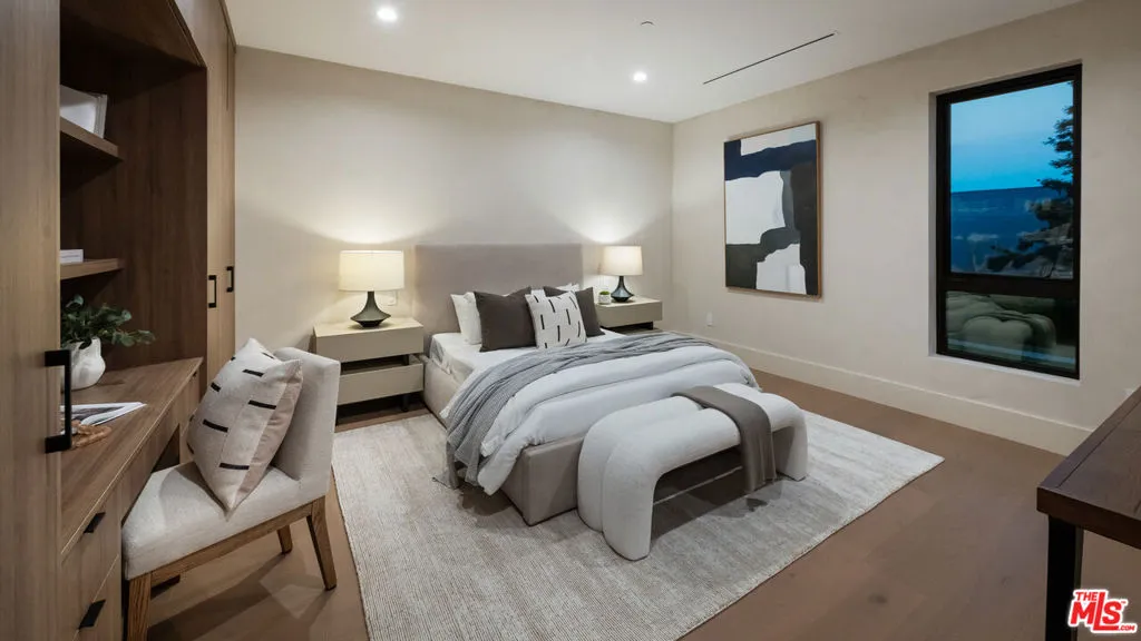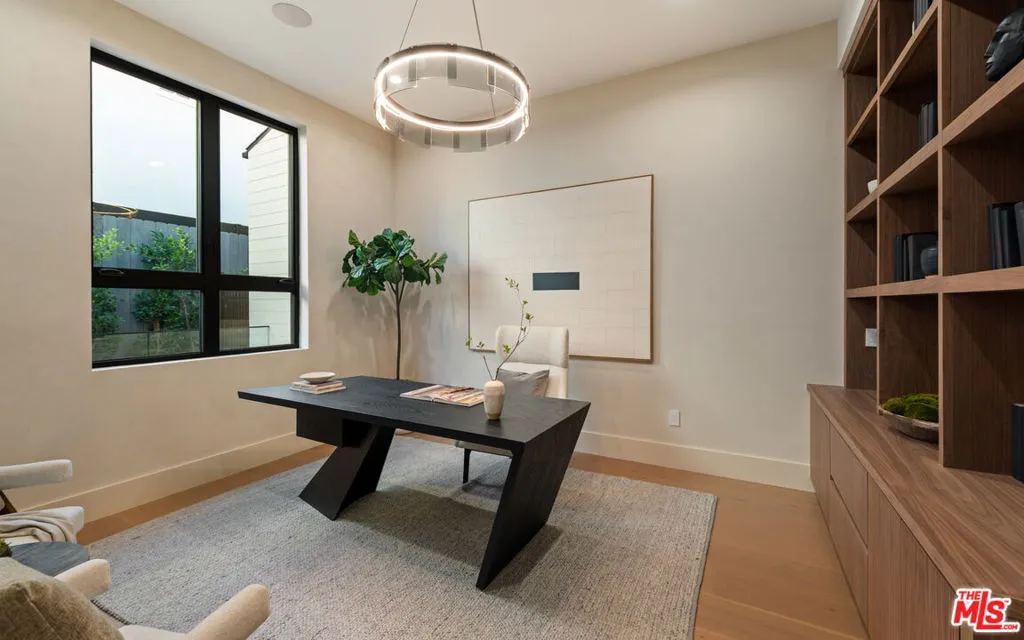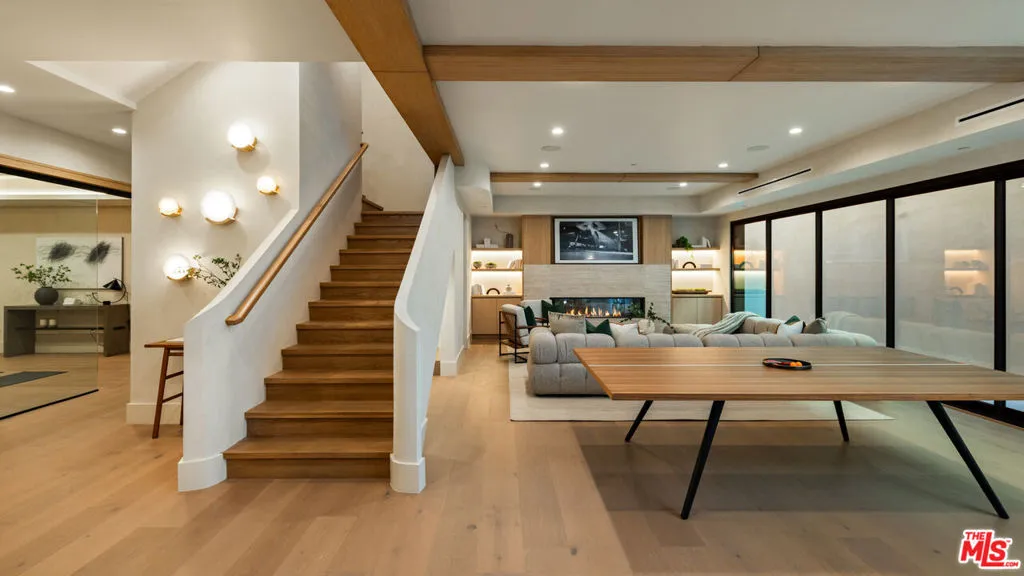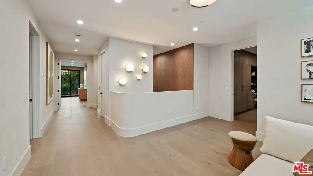 Discover refined coastal living in this newly built architectural estate in the coveted Huntington Palisades. This three-level modern masterpiece offers 7 bedrooms, 9 bathrooms, and over 8,000 sq ft of thoughtfully designed living space, blending timeless materials with cutting-edge convenience. A signature design element is the home’s intentional progression of rich walnut and warm oak: bold walnut millwork anchors the main level, while the upper and lower floors transition to softly grained oak, creating a cohesive, elevated aesthetic throughout. Limewash and Roman clay walls, soaring ceilings, and expansive openings set a warm, sophisticated tone from the moment you enter. Custom walnut and white oak cabinetry and paneling, paired with a modern mix of porcelain and glazed ceramic tile, further elevate the home’s refined material palette. The custom chef’s kitchen is the heart of the home, featuring a Sub-Zero/Wolf gourmet suite of appliances, bespoke cabinetry, an oversized island, and Taj Mahal stone slabs. An extra-large pantry with concealed secondary appliances supports seamless entertaining. The kitchen flows directly into the grand dining area and expansive family room, where a sleek travertine-clad fireplace and oversized sliding doors open to the pool, spa, and outdoor lounge for true indoor/outdoor living. The lower level is designed for entertaining and wellness, showcasing a private movie theater, an Emperador marble clad built-in bar, and a fully equipped gym with steam room. Large sliding doors extend this level to an additional outdoor area, creating a resort-like experience. Plumbing fixtures throughout include selections from Brizo, Watermark, Gessi, Toto, and Mr. Steam, blending function with luxurious craftsmanship.Upstairs, generously scaled bedroom suites provide comfort and privacy, each with curated finishes and luxurious bathrooms. The serene primary retreat offers a spa-like bath and custom wardrobe, completing the sense of everyday escape. Additional amenities include an elevator serving all three levels, a 3-car garage, and smart-home integrations. The grounds are anchored by an extraordinary 150-year-old heritage tree, a rare natural centerpiece that adds history and character to this modern residence.A rare opportunity to own a meticulously crafted new-construction home in one of Pacific Palisades’ most desirable neighborhoods, designed for both grand entertaining and effortless everyday living.