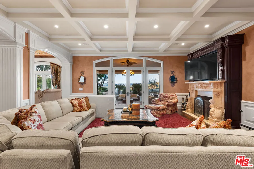 Behind the coveted secondary gates of The Estates at The Oaks, this exceptional custom residence offers unmatched privacy, sweeping mountain and canyon views, and a rare opportunity to own one of Calabasas’ premier properties. Set on an expansive, beautifully landscaped lot, the home blends timeless design with resort-style amenities throughout. A grand double-height foyer introduces a warm, open layout ideal for both everyday living and elevated entertaining. The main level features formal living and dining rooms, a lounge wing with game room, full bar, and a private theater, along with a chef’s kitchen anchored by Viking appliances, a large island, and a cozy fireplace.Upstairs, the serene primary retreat enjoys a fireplace, large walk-in closet, spa-inspired bath, and a private balcony framing spectacular view lines. Outside, the estate transforms into a true private compound complete with a beach-entry pool and spa, generous grassy areas, a putting green, sports court, two outdoor fireplaces, fire pit, and a full barbecue pavilion with smoker and pizza oven. Additional amenities include a 1,000-bottle temperature-controlled wine room, gym with massage space, elevator, and a climate-controlled, fireproof 8-car garage perfect for collectors.