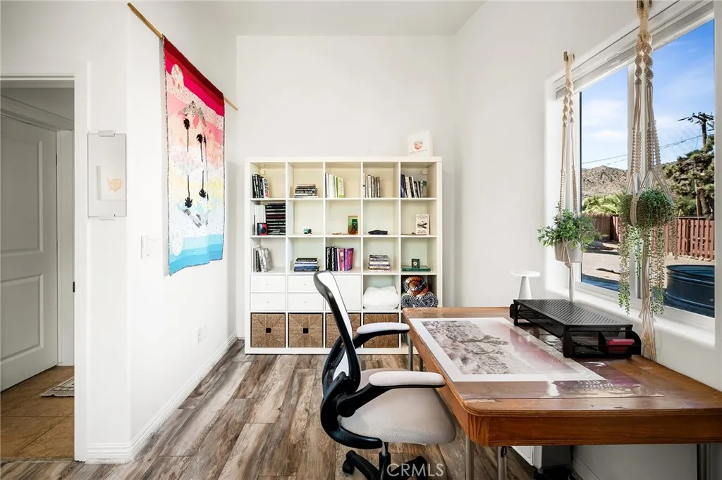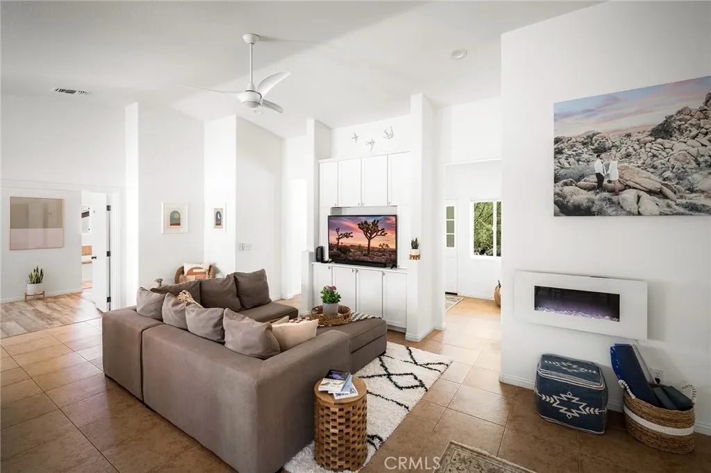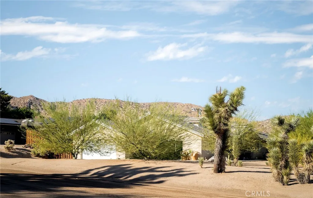 Set against sweeping mountain views in one of the area’s greenest and most established neighborhoods, this beautifully maintained 3-bedroom, 2-bath home with bonus room sits on a prime half-acre corner lot in desirable Country Club Estates. A mature, tree-lined front yard with lush desert landscaping creates exceptional curb appeal and a welcoming arrival. No HOA. Newly paved streets, connected to public sewer and natural gas, school bus stop, and a short walk to the area’s only golf course and popular café, The Roost. Conveniently and centrally located just a short drive to Joshua Tree, Pioneertown, and Palm Springs.