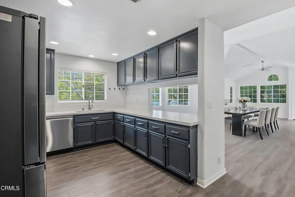 Beautifully refreshed and thoughtfully presented, this light-filled end-unit condo features virtual staging designed to showcase its full potential.Soaring vaulted ceilings, modern finishes, and an open, airy layout create an immediate sense of space and comfort. The smartly designed kitchen features, quartz countertops and a clean, functional flow, while recent upgrades-including a new HVAC system and ducting-add peace of mind and year-round efficiency. Ample storage further enhances everyday livability.Ideally located near Moorpark High Street with convenient access to the 101, 23, and 118 freeways, as well as the Metrolink, this home is ideal for commuters and those seeking convenience and connection.Set within a gated community in a walkable area, this move-in ready home offers a rare blend of comfort, modern style and low-maintenance living.