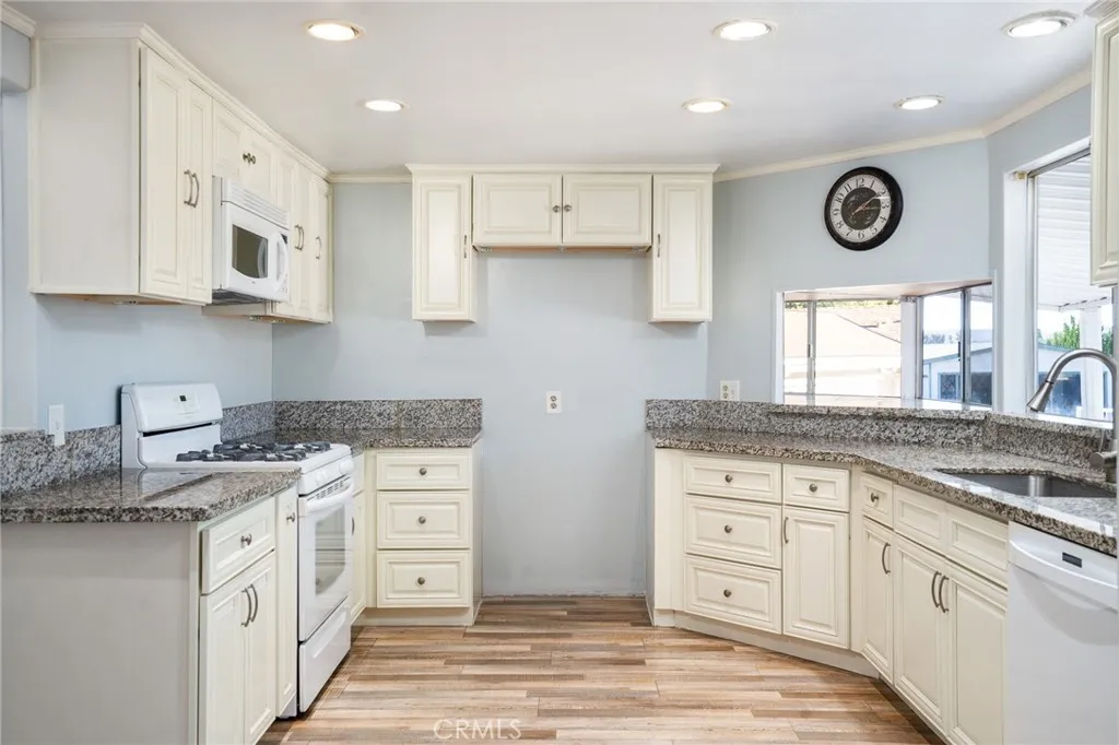 * VIEWS & BEAUTIFULLY UPDATED * This 3-bedroom home is located in the highly desirable 55+ community of Golf Knolls, where you own your own land. This home is on permanent foundation convenient for financing. A rare opportunity to live at the top of the hill, this home offers stunning mountain views and a highly sought-after open floor plan with two separate living spaces—ideal for flexible living, entertaining, or creating a cozy retreat. The home has been thoughtfully remodeled with upgraded flooring throughout, a spacious kitchen featuring granite countertops, and a freshly painted interior that feels bright and inviting. Additional updates include a new roof, providing peace of mind for years to come. A unique feature of this home is the large covered front porch with views of the Santa Rosa Plateau. The porch presents a generous outdoor living space, a perfect place to enjoy your morning coffee and, in the evening, admire the sunsets. Upon entering the home through the convenient glass sliding door off the porch the home opens into a generous size bright & open great room that accommodates the kitchen, casual dining area & living room featuring wood beamed cathedral ceilings, engineered wood flooring & ceiling fan. The home’s second entry leads to a large, light-filled formal living area, also designed with beamed cathedral ceilings, a ceiling fan, and two oversized picture windows that beautifully frame the surrounding views. Golf Knolls is an active community offering 3 pools, 2 spas, exercise room, clubhouse with community events, billiards room, a library, ping pong, card rooms, sauna, laundry facilities and BBQ areas. Minutes from dining, shopping and the Temecula wineries! A MUST SEE HOME