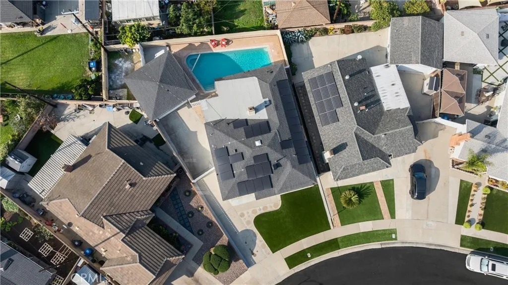 Gardena and South Bay single story on a quiet cul de sac with a pool, spa, and paid off solar, plus a true move in ready feel. 17321 Merit Ave is a recently updated 3 bedroom, 2 bathroom home at nearly 1,400 square feet with fresh interior and exterior paint, new baseboards, new floors, modern hardware, recessed lighting, center ceiling fans with lights and central air conditioning adds comfort throughout. The large, well sized kitchen offers generous storage, granite countertops, and plenty of space to cook and gather. Just off the kitchen, a bright dining area features a large skylight and opens to a welcoming fireplace, creating a warm hub for everyday living and entertaining. French doors lead to the enclosed sunroom, a flexible bonus space perfect for a home office, playroom, gym, added family room or relaxing lounge. Step outside to a sparkling pool and spa with a covered patio area off the pool deck for easy outdoor dining and weekend hangouts. The front yard is designed for lifestyle and function with low maintenance turf. Behind the detached 2 car garage, you will find a versatile bonus zone that works beautifully as a great home garden area, dog run, extra storage area, storage or more play space. The primary bedroom is a comfortable retreat with two closets plus additional cabinetry space. With cul de sac positioning, single level living with no interior steps, a separate indoor laundry room, and that rare combination of pool, solar, and bonus spaces, this home checks a lot of boxes. Convenient South Bay location with access to major freeways, LAX, Downtown LA, SoFi Stadium, and the beach cities for dining, shopping, and coastal weekends.