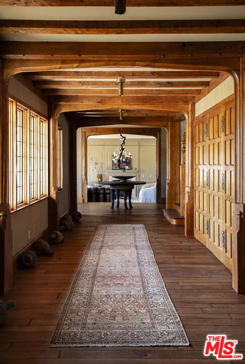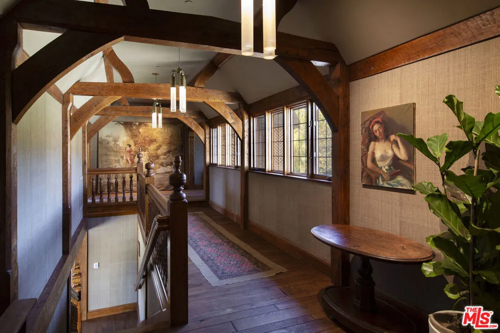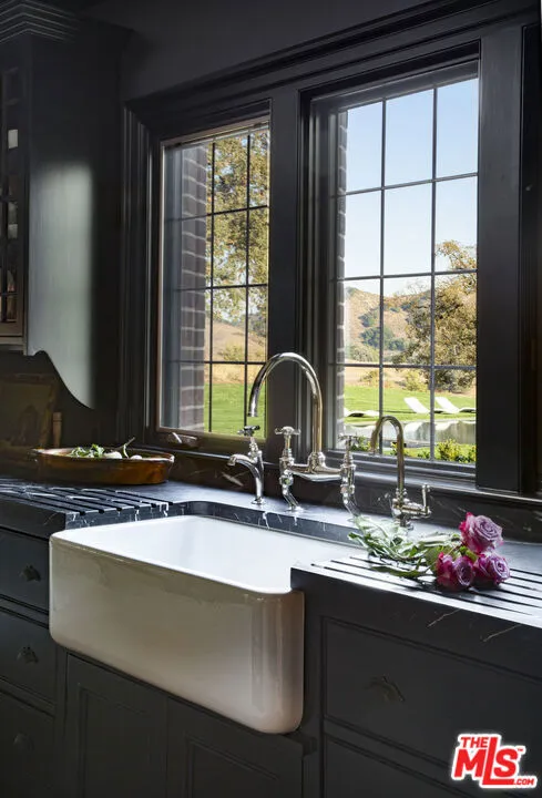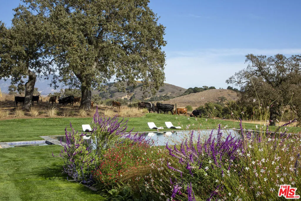 Seven Oaks Ranch is an enchanting 103+/- acre country estate situated in prestigious Happy Canyon, Santa Ynez. This idyllic estate is crowned by a magnificent residence inspired by classic English manors. Originally completed in 2002 and recently reimagined by famed designer Jane Hallworth, the interiors exude a refined elegance that honors the estate’s heritage yet with a contemporary edge. The breathtaking zero-edge pool overlooks manicured lawns against a backdrop of oak-studded mountains and the nearby pool house features an exercise room, a spacious four-car garage, and a potting room. An enchanting allee of sycamore trees leads to the stables, bordered by a kitchen garden on one side and a Rosa Rugosa hedge on the other. The stables are an architectural marvel dressed in pine wood interiors and features 4 stalls, a tack room, and a unique turret which was designed as manager’s quarters. With its private setting, breathtaking landscapes, and masterful design, this extraordinary estate offers an unmatched lifestyle in the heart of the central coast.