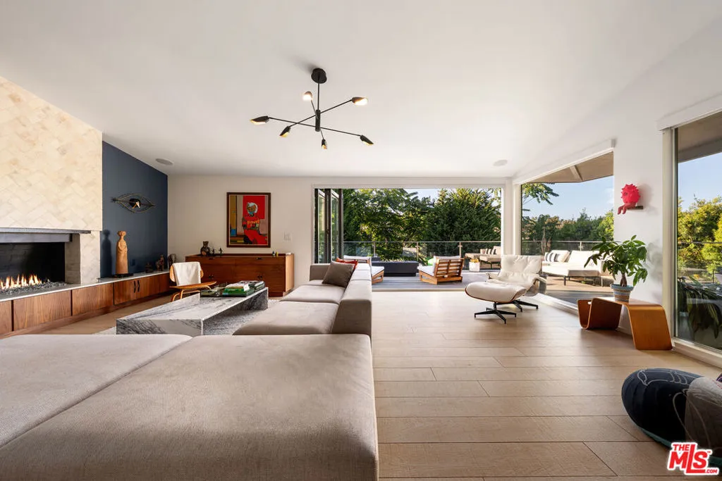 Located in the coveted Santa Monica Canyon, this reimagined coastal contemporary blends mid century character with sleek modern design in one of the Westside’s most prestigious enclaves. Designed for seamless indoor outdoor living, it’s a home that delivers both everyday comfort and year round entertaining in equal measure. The main level features a dramatic living room with soaring ceilings, a fireplace, custom built cabinetry, a statement fireplace, and walls of glass framing serene treetop and canyon views. Accordion glass doors fold open to create a fluid connection to the outdoors, where expansive decks invite relaxation in the coastal breeze. The open concept kitchen and dining area feature bespoke walnut cabinetry, skylights, built in bar shelving, and top tier stainless steel appliances, skylights, with direct access to an outdoor lounge deck. A full bedroom and bathroom, currently styled as a home office, complete this level. The lower level offers three spacious en suite bedrooms, including a serene primary suite with a private balcony overlooking the grassy yard. The spa inspired bath is appointed with a freestanding tub, walk in shower, and a brand new custom vanity. Two additional suites provide generous accommodations for family or guests. Features & Upgrades include a Whole House Filtration System for pure, clean water throughout, a Battery Backup Power Supply ensuring seamless comfort and security, an EV Charger for effortless electric vehicle convenience, and a two car garage with ample storage. Unmatched access to the best of coastal living: moments to the beach, Ocean Avenue bluffs, and Santa Monica Stairs. Stroll to Montana Avenue boutiques, artisan coffee shops, and award winning dining or head minutes north to Palisades Village and Malibu. The home sits within the highly acclaimed Canyon Charter Elementary School district, in a leafy enclave prized for its walkability, privacy, and sea salt air.