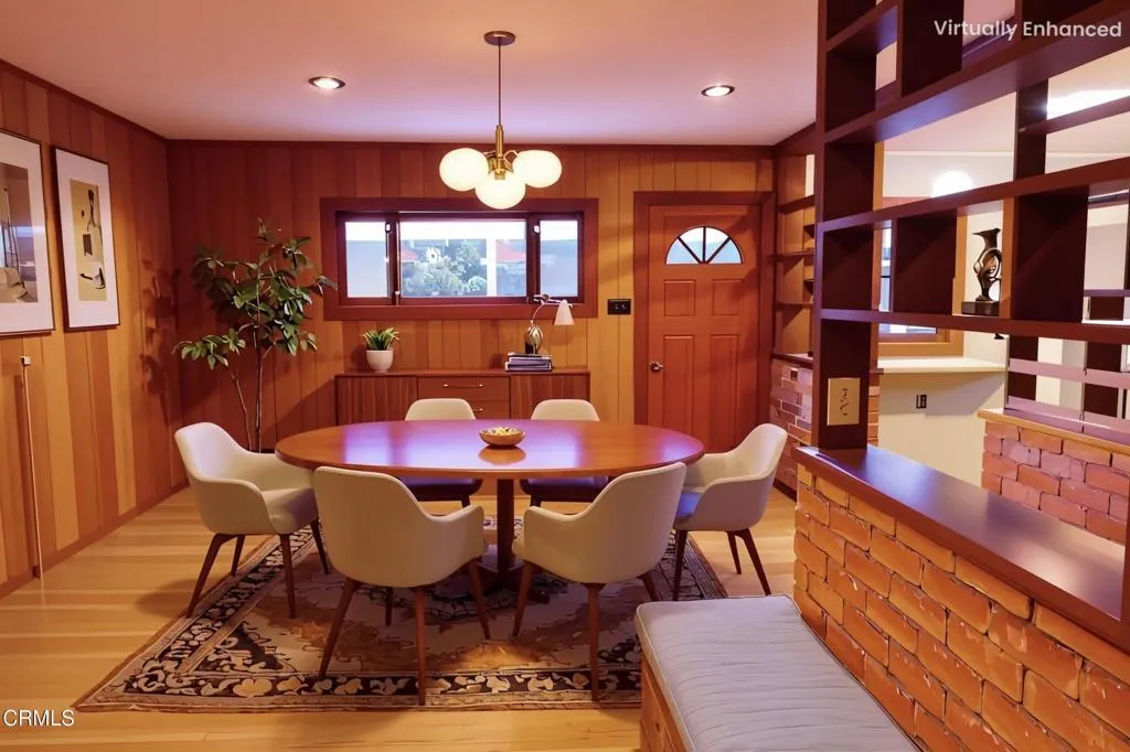 MidCentury Modern Charmer with Style in the Fort Bragg City Limits. Behind a six foot privacy fence, you’ll discover a little oasis of a home. Step inside and be welcomed by warm wood tones, a handsome brick fireplace, and custom architectural redwood shelving that sets the stage for cozy living. This inviting home offers two bedrooms plus a versatile bonus room and an enclosed sun porch–perfect for hobbies, exercise, a home office, or simply relaxing in natural light. The kitchen features brand-new appliances, and updated heaters provide modern comfort throughout. The spacious bathroom stands out with its distinctive mosaic tile countertop. Luxury vinyl flooring in the living room, dining room and kitchen. Outside, the fully fenced property features include a fruit-bearing apple tree, a mature acacia tree and two convenient storage sheds. A truly unique highlight is the original cabin still standing on the lot. Though now a rustic shell, it carries undeniable character and historic charm, offering endless possibilities for creative restoration or simply as a conversation piece.