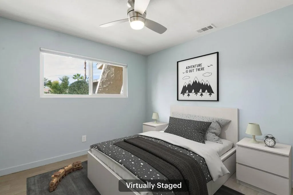 Rare 4 bedroom, 2 bathroom, single level home located within the Palm Desert Country Club area, with fantastic curb appeal, a semi-private front patio area to enjoy plus professional landscaping featuring drip irrigation and landscape lighting making an inviting entrance. Also, No HOA! The interior is spacious and has been completely remodeled over the past 10 years. Offering new windows, new doors, new plumbing, new lighting, new ceiling fans, fresh paint, new trim, new tile flooring, updated kitchen and bathrooms, new garage door and garage insulation, a complete landscape replacement, newer HVAC (2018), and water heater (2023). The living room offers a fireplace and double French doors to the backyard. The gorgeous kitchen has modern cabinetry, with full wall backsplash, an on-trend apron sink, and stainless steel appliances including the refrigerator, gas range, and dishwasher. All 4 bedrooms are generously sized and feature a custom paint scheme, the main bedroom offers a private ensuite with walk-in shower. There is also a full-size hall bathroom for the 3 secondary bedrooms to share. Both bathrooms feature custom tile work, new toilets, new vanities, and fixtures. The 2-Car Garage also has laundry hookups with an included Washer and Dryer. Enjoy the private backyard with block wall fencing, a pergola to relax under, and low maintenance landscaping, this is a great place to relax and entertain! This home is truly ready for the new owner to move in and start making memories for years to come or can be a great investment opportunity, schedule your tour today!