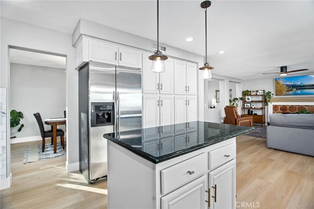 Inside, enjoy premium luxury vinyl plank flooring, fresh interior paint, and new Milgard windows with UV-protection glazing. A beautiful Saltillo tile hearth and custom white oak fireplace mantle anchor the family room. Additional updates include new ceiling fans with remotes, LED recessed lighting, and a pet access door.