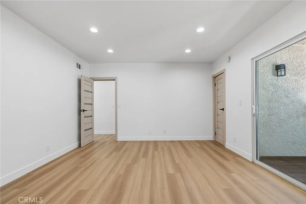 Step inside to a large living room bathed in natural light, with newly installed flooring. The formal dining area seamlessly flows into the custom remodeled kitchen, showcasing quartz countertops, premium stainless steel appliances, and sleek custom cabinetry—an entertainer’s dream. Enjoy seamless indoor-outdoor living with an oversized, newly tiled private patio, ideal for al fresco dining and tranquil evenings under the stars.