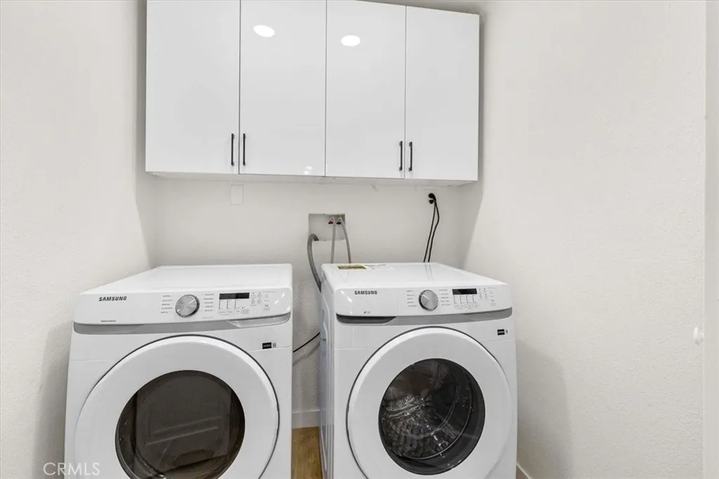 The spacious primary suite provides a peaceful escape with direct views of the sparkling pool. A dedicated laundry room with brand-new washer and dryer adds comfort and convenience.