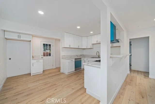 This home has been extensively upgraded with new recessed lighting, updated flooring, new doors, and fresh paint. The remodeled kitchen is a true highlight, featuring new cabinetry, modern countertops with stunning warm-toned veining, and new appliances complemented by warm flooring that flows throughout the home.