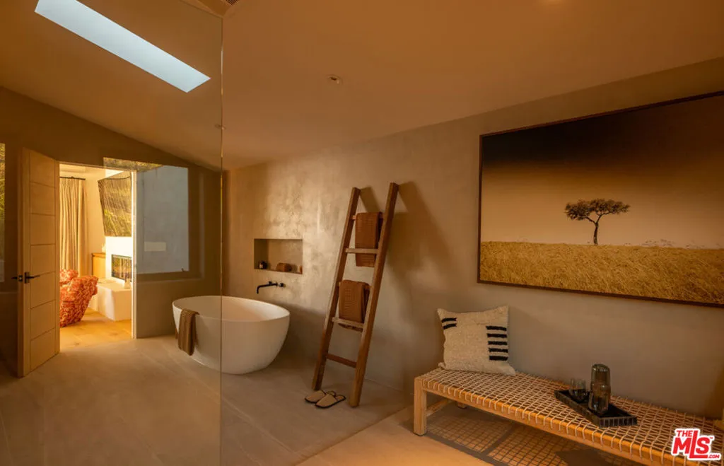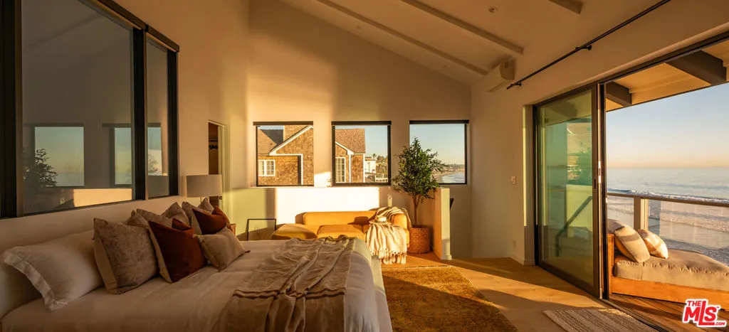 Welcome to The Point Break Estate, an irreplaceable Broad Beach architectural masterpiece. Reimagined in 2025, this 3-bedroom, 3-bath beachfront estate offers panoramic ocean views with direct, private steps to the beach at iconic Trancas Point. Designed as a statement of modern surf-luxe-eco coastal excellence, the residence delivers seamless indoor-outdoor living with Fleetwood walls of glass and a rare Zero-Carbon design, powered by a 30-panel solar array, full battery backup, EV charging, and all-electric systems. The dramatic great room, crowned by soaring glass ceilings, features European white oak floors, hand-finished micro-cement walls, and dual living zones anchored by a striking Net-Zero E holographic fireplace. The world-class chef’s kitchen boasts imported Italian white oak cabinetry, an oversized island with seating for five, Taj Mahal quartz countertops, and top-tier Gaggenau appliances. Outdoors, the oceanfront deck serves as a private resort with a cedar hot tub, fire pit, dual grills, and front-row sunset seating. The ocean-view primary suite on the upper level is a true sanctuary with a private balcony, Net Zero E holographic fireplace, spa-level bathroom, dual showers, a limestone hybrid soaking tub with ocean views, and a custom, natural-light-filled walk-in closet. Two refined guest suites complete the layout. Additional highlights include a remodeled two-car garage, full smart-home integration, and approved plans for a 1,100-sq-ft expansion (buyer to verify). Make this dream a reality.