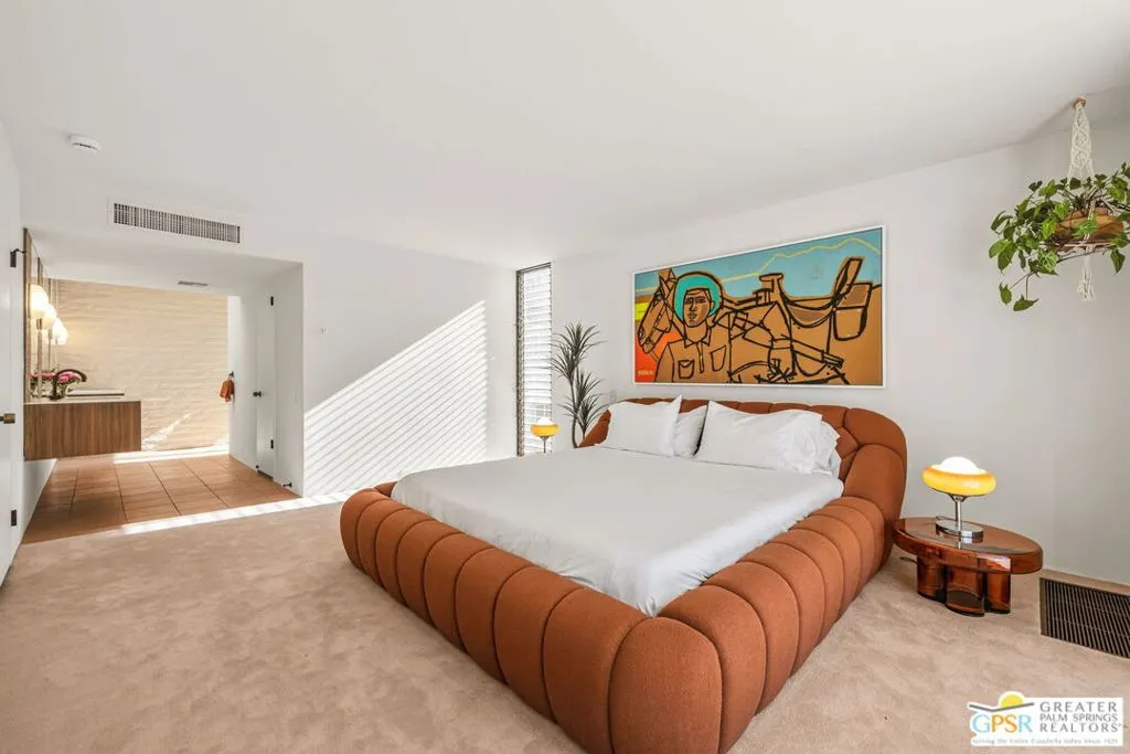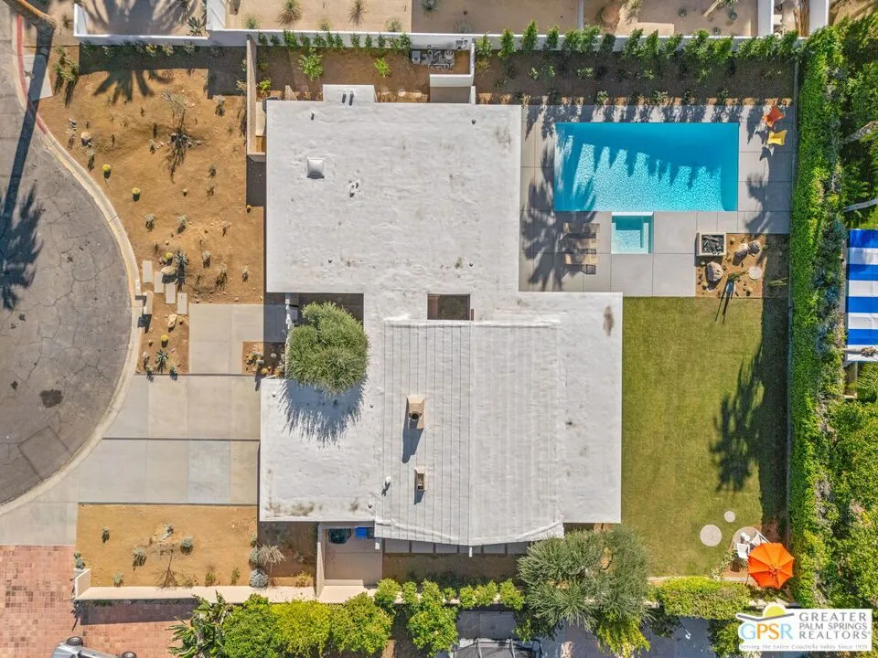 Designed in 1969 by Hugh Kaptur, AIA, and thoughtfully restored in 2025 with his blessing, this exceptional single-level post-and-beam residence reflects the architectural clarity and restraint that define Kaptur’s most enduring work. Located on an ultra-private cul-de-sac in the heart of Movie Colony, the home honors its pedigree while presenting with renewed integrity. Clean lines, open-plan interiors, and rhythmic colonnades establish a strong architectural framework, while expansive walls of floor-to-ceiling glass and sliding doors dissolve the boundary between indoors and out. Mountain views unfold to the west, with nearly every room opening directly to the landscape. The light-filled living room is a signature moment defined by vaulted, exposed-beam ceilings, warm wood-paneled walls, integrated built-ins, and a substantial fireplace anchoring the space. Clerestory windows and a serene interior atrium further enhance this area’s connection to light and nature. The adjacent kitchen is crowned by floating light panels and features Walnut colored cabinetry, stone countertops, Fisher & Paykel appliance suite, and a pass-through to the dining area reinforcing the home’s original modernist flow. All primary living spaces extend to a covered patio overlooking the ultra-private south and west-facing backyard, where Mount San Jacinto views frame a pool and spa, open-air fireplace, and generous lawn creating an elegant extension of the architecture itself. The west-facing Primary Ensuite opens directly outdoors and includes dual sinks, a south-facing walk-in shower with views, and a custom walk-in closet. Junior Ensuite Two opens to the front courtyard and enjoys a private bath with walk-in shower. Bedroom Three offers pool and mountain views, while a hallway powder bath serves guests. Just moments from downtown Palm Springs, this is a rare opportunity to own an authentic, architect-restored Kaptur residence in one of the city’s most cherished neighborhoods. Ideal for full or seasonal enjoyment as well as those seeking a prominent short-term vacation rental.
