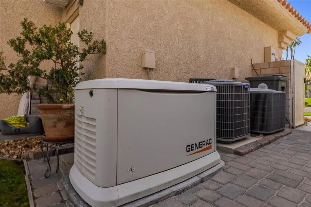 First time been on the market in 36 years. This remodeled exceptional single story pool home is tucked within The Links, a private enclave inside the prestigious Desert Falls Country Club, offering refined design paired with true resort-style living. The residence features four bedrooms that is ideal for guests or multigenerational living. Extensive high-end upgrades include 25 fully paid solar panels paired with a 24 kW backup generator delivering both luxury and energy efficiency. The stunning remodeled kitchen showcases custom cabinetry, slab granite countertops and a beautifully integrated stainless steel refrigerator, while a sophisticated bar with slab granite, custom cabinetry that enhances entertaining. Charming porcelain tile flows through the main living areas of kitchen, dining and living room. Guest bedrooms have upgraded laminate wood flooring. Plantation shutters throughout providing timeless elegance. The primary bath is a true retreat, highlighted by quartz surfaces, custom above counter custom sinks, and a walk-in shower. Outdoors, the expansive backyard is an entertainer’s dream, featuring an outdoor BBQ island, large saltwater pool and spa with LED lighting, and specialty lighting throughout the home and landscape, all framed by lush custom landscaping. Three fireplaces add warmth and ambiance throughout the home, while a spacious three-car garage completes the property. Homeownership includes WiFi and cable, tennis, pickleball, a state-of-the-art fitness facility, and 24-hour guard-gated security, with Desert Falls Country Club offering flexible pay-as-you-play or membership options. Perfectly situated mid-valley with easy I-10 access, this home is moments from dining, shopping, and everyday conveniencesa”and just minutes from the renowned Acrisure Arena, home to the Coachella Valley Firebirds and world-class entertainment.