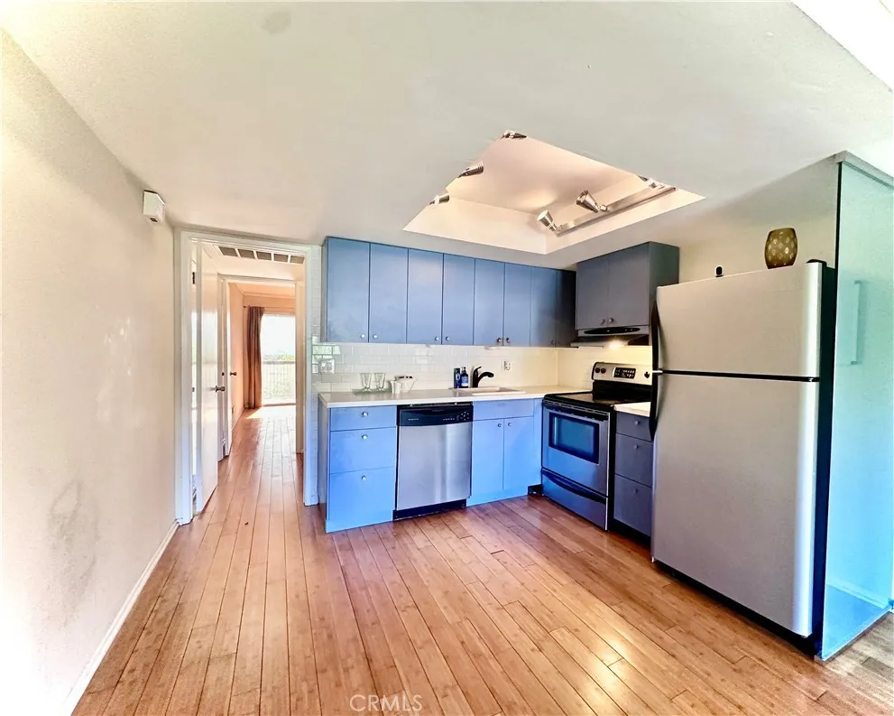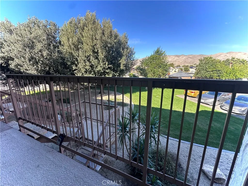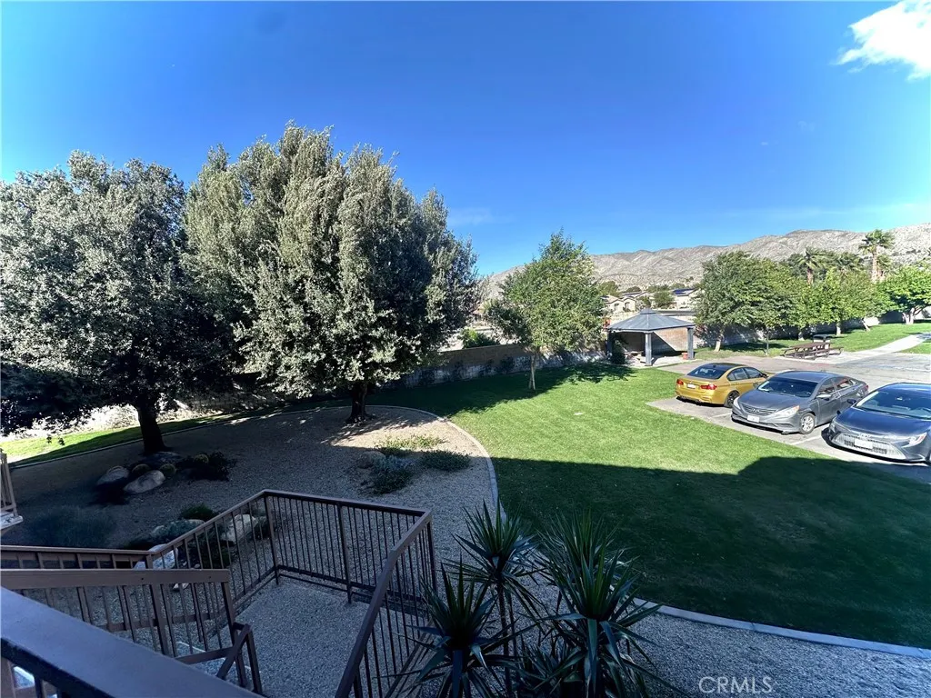 This upstair unit offers nice flooring, kitchen features stainless steel appliances, cabinetry, a dishwasher and refrigerator. The bedroom opens to a private shaded patio with desert and mountain views, wide closet and another walk-in closets w built-ins for added storage.