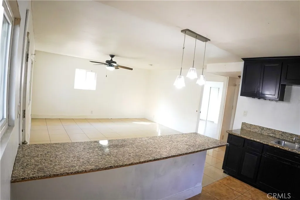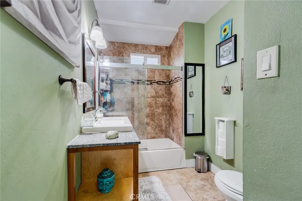 Enjoy tile and laminate flooring throughout, a spacious kitchen with lots of cabinetry, and sleek granite countertops. Both bathrooms showcase custom tile work, vanities, and stylish mirrors.